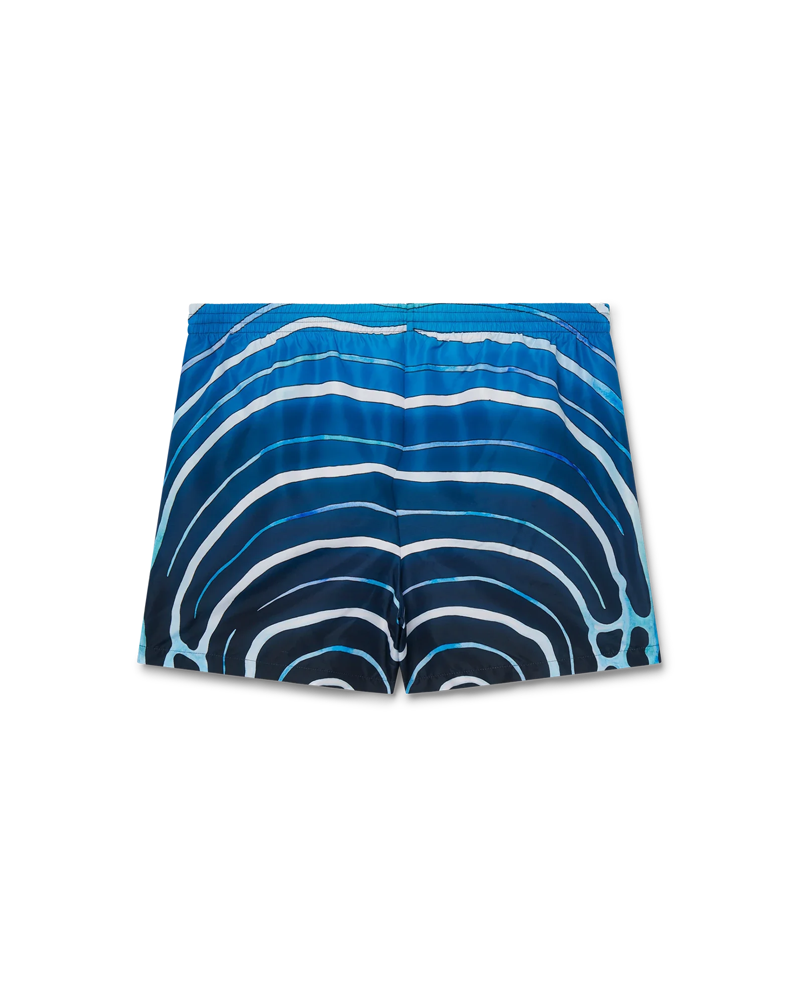 The Ange De Nuit swim trunks are a summer staple made from technical polyester fabric displayed in the Casablanca Paris deep blue and white Ange De Nuit print. Completed with an elastic waistband. drawstring fastening and side pockets.