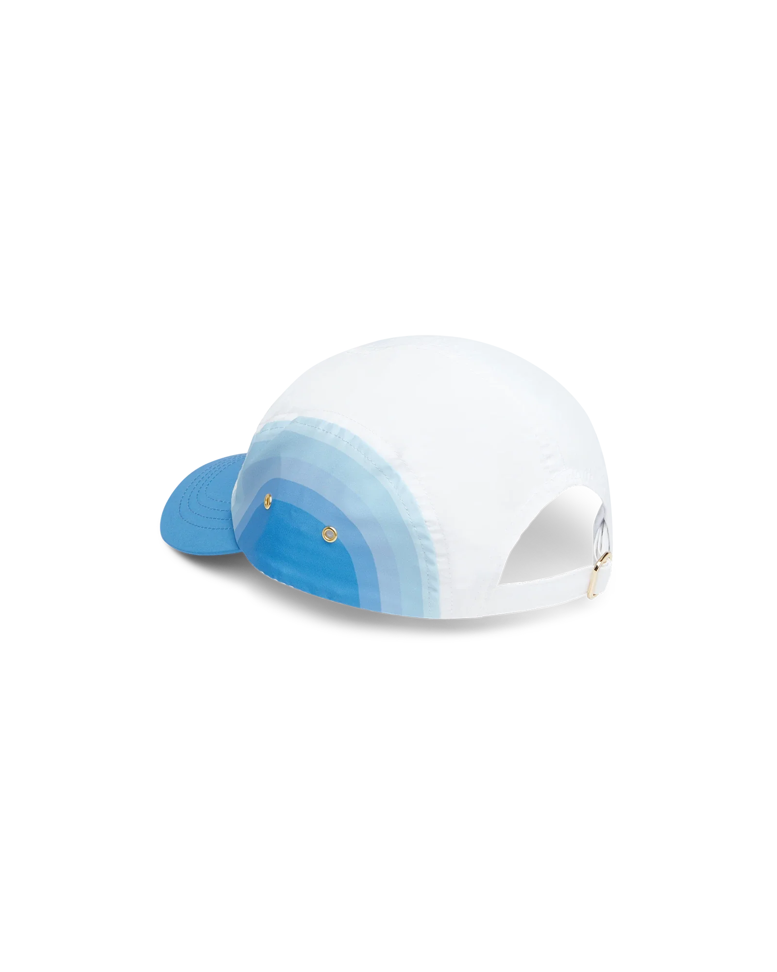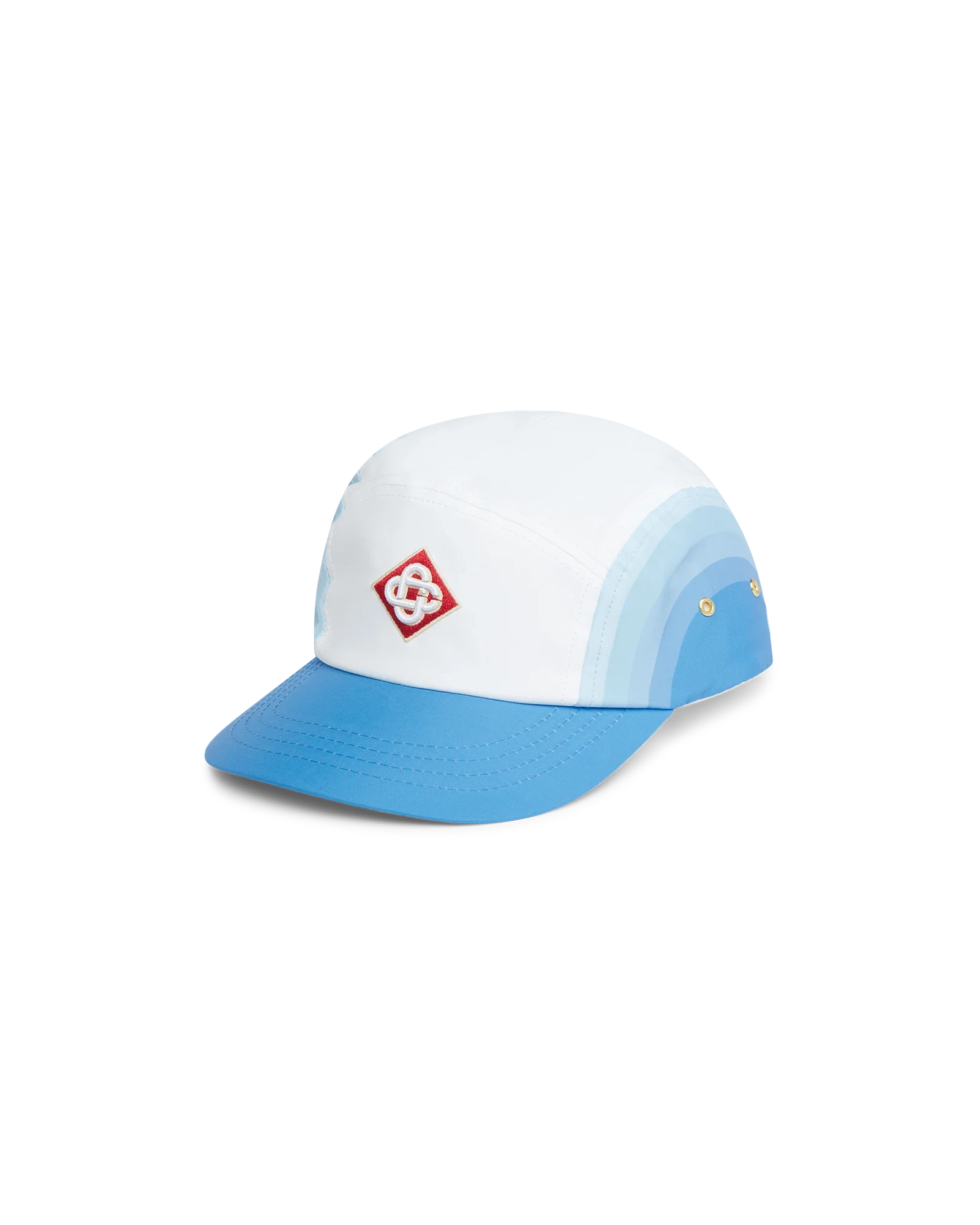The blue gradient monogram cap features the house’s signature diamond monogram patch. Completed with adjustable hook-and-loop gold closure on the back.