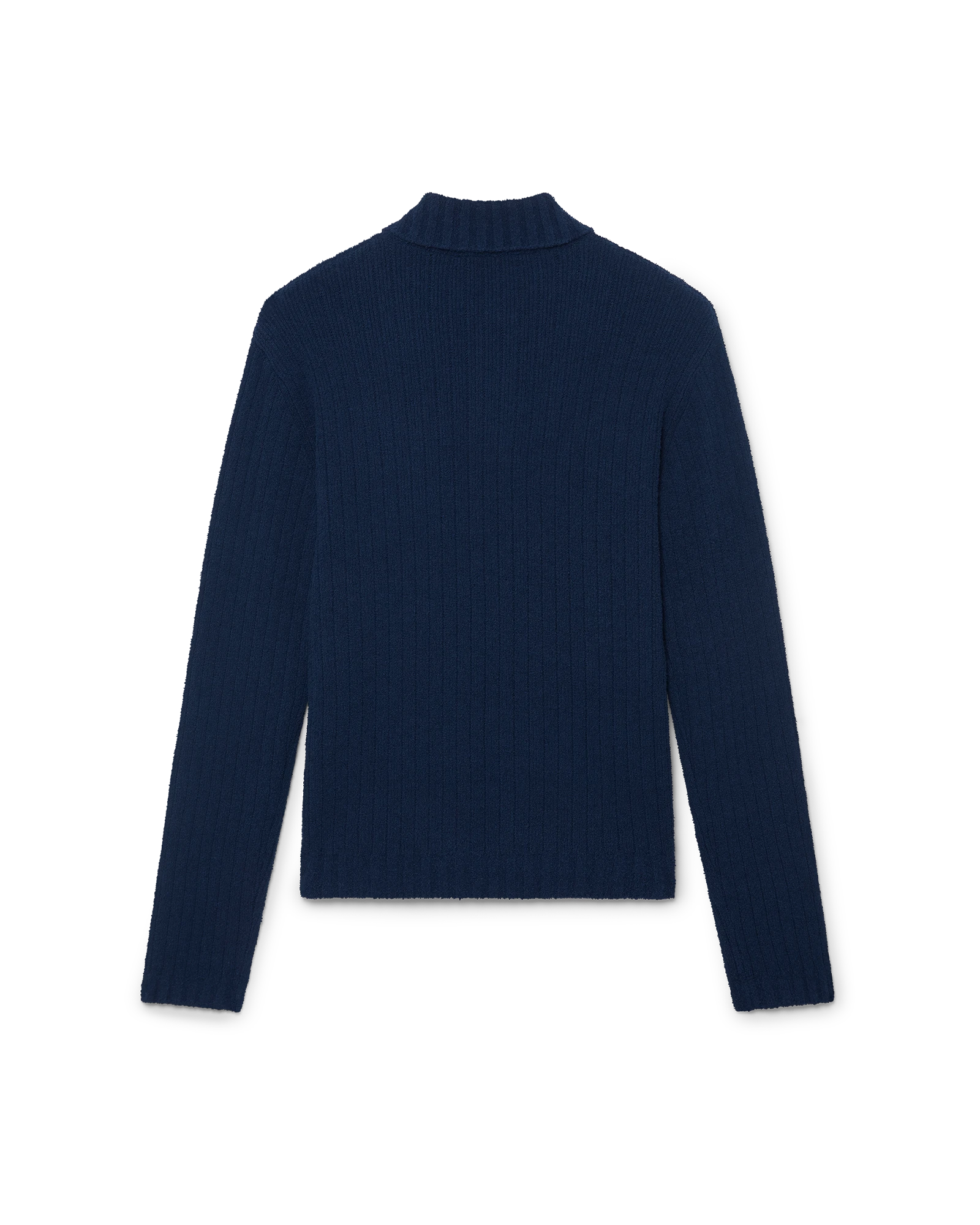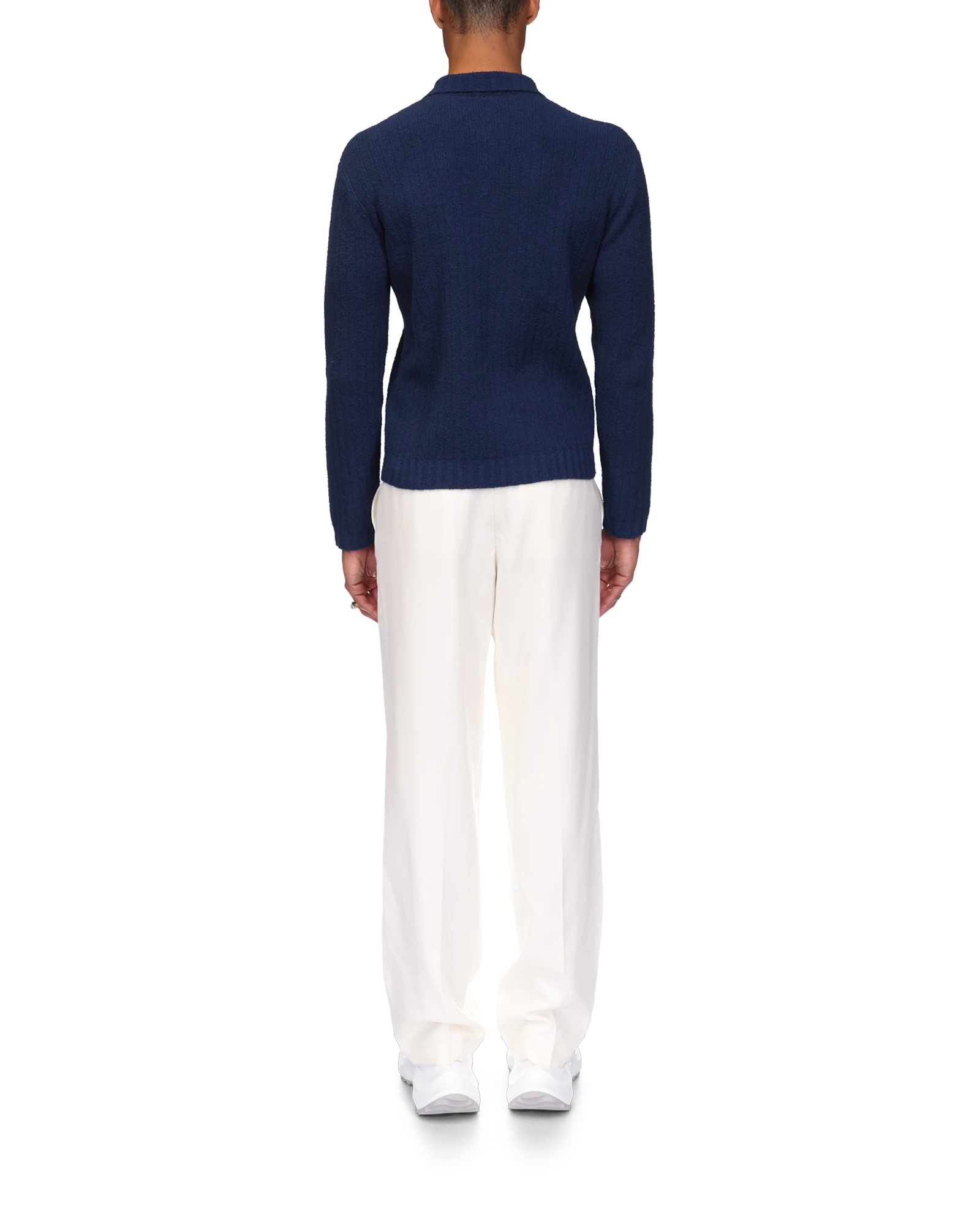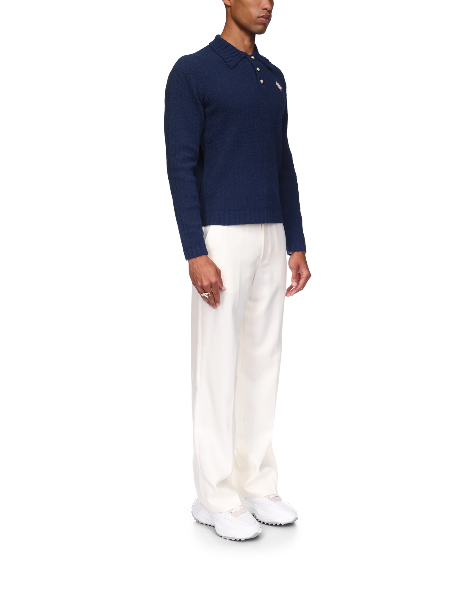 The boucle polo shirt is a long-sleeved design crafted from a cotton blend fabric featuring the house’s signature diamond logo. Completed with signature gold rim pearl buttons. and a rib collar. cuffs. placket. and hem.