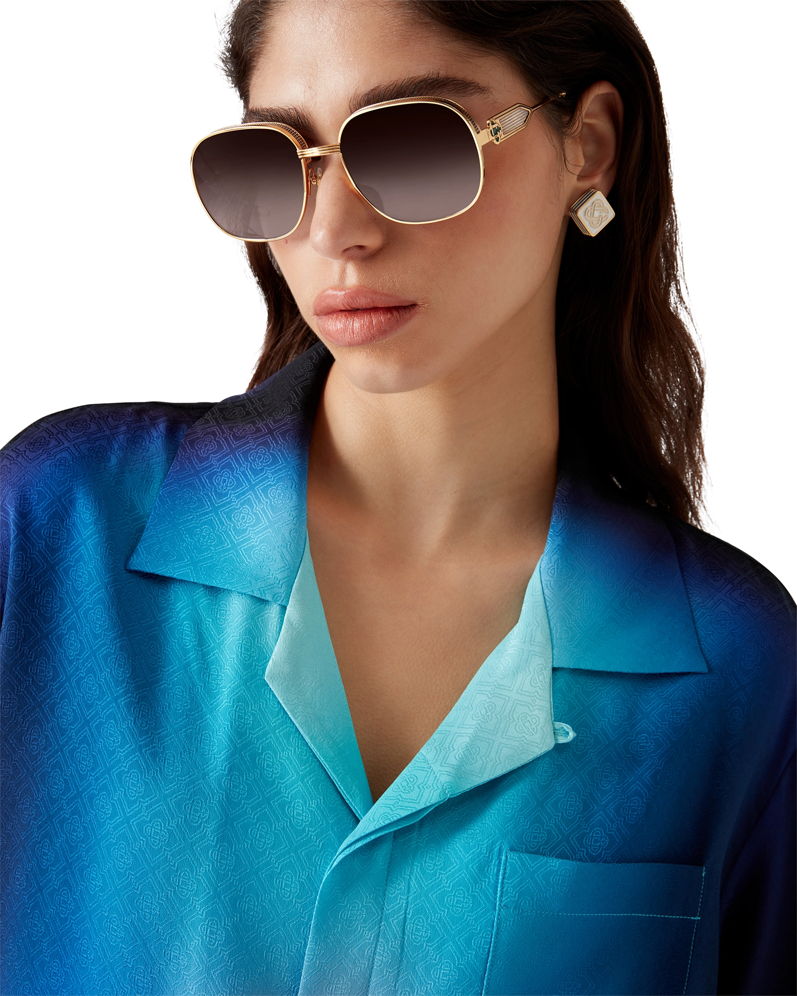 The Gradient silk shirt is a printed design featuring the season’s gradient colours crafted from silk fabric. Completed with a Cuban collar. a breast pocket. hidden button closure. and interlocking CC logo corozo buttons. Designed to be worn with its matching Gradient silk shorts.
