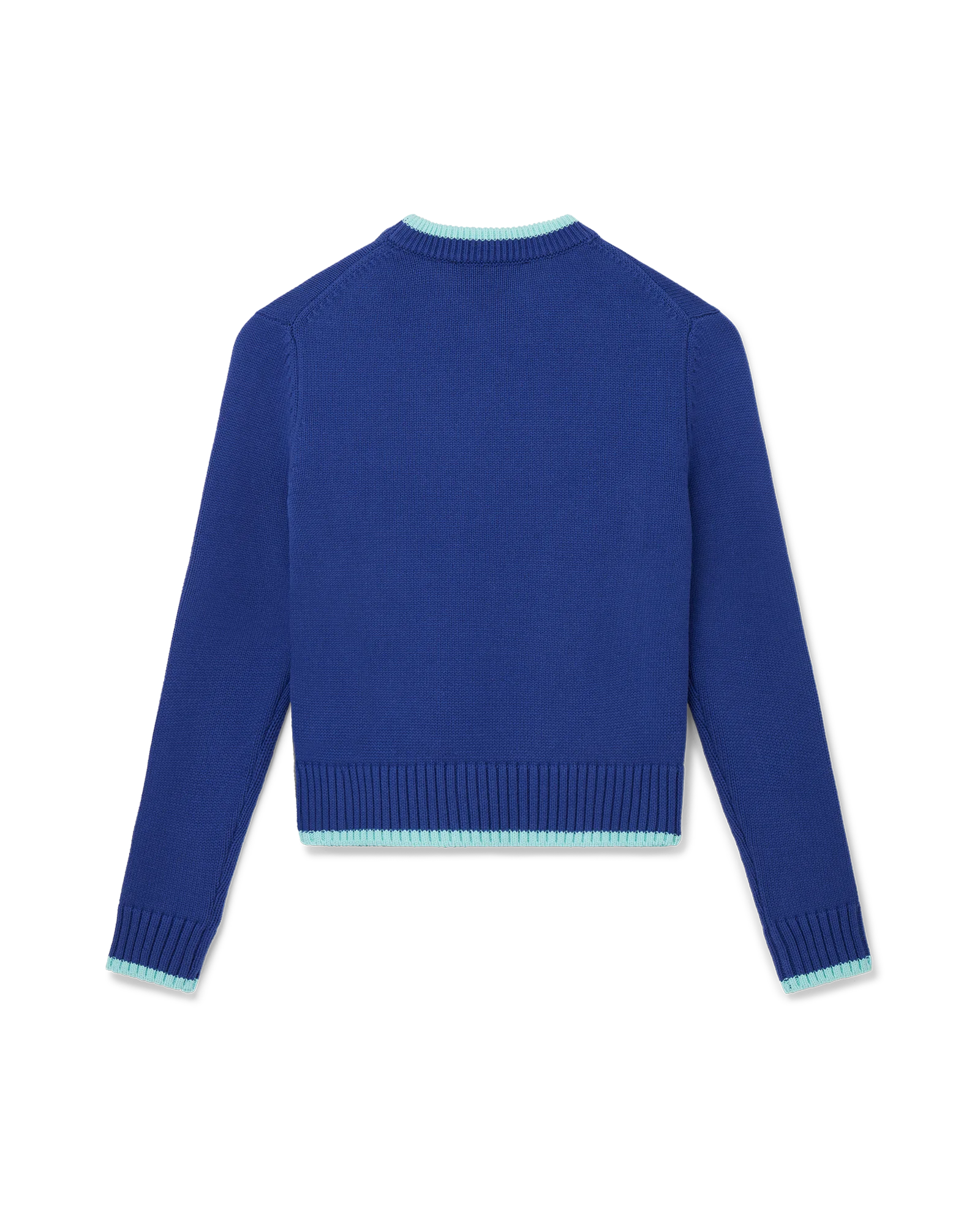 The Le Pouvoir Des Fleurs intarsia cotton jumper featuring seasonal artwork incorporating Casablanca symbology with Arabic iconography. Made of 100% cotton. the style is a classic long-sleeved high neck style with contrast rib knit collar and cuffs and has been designed for a classic fit.