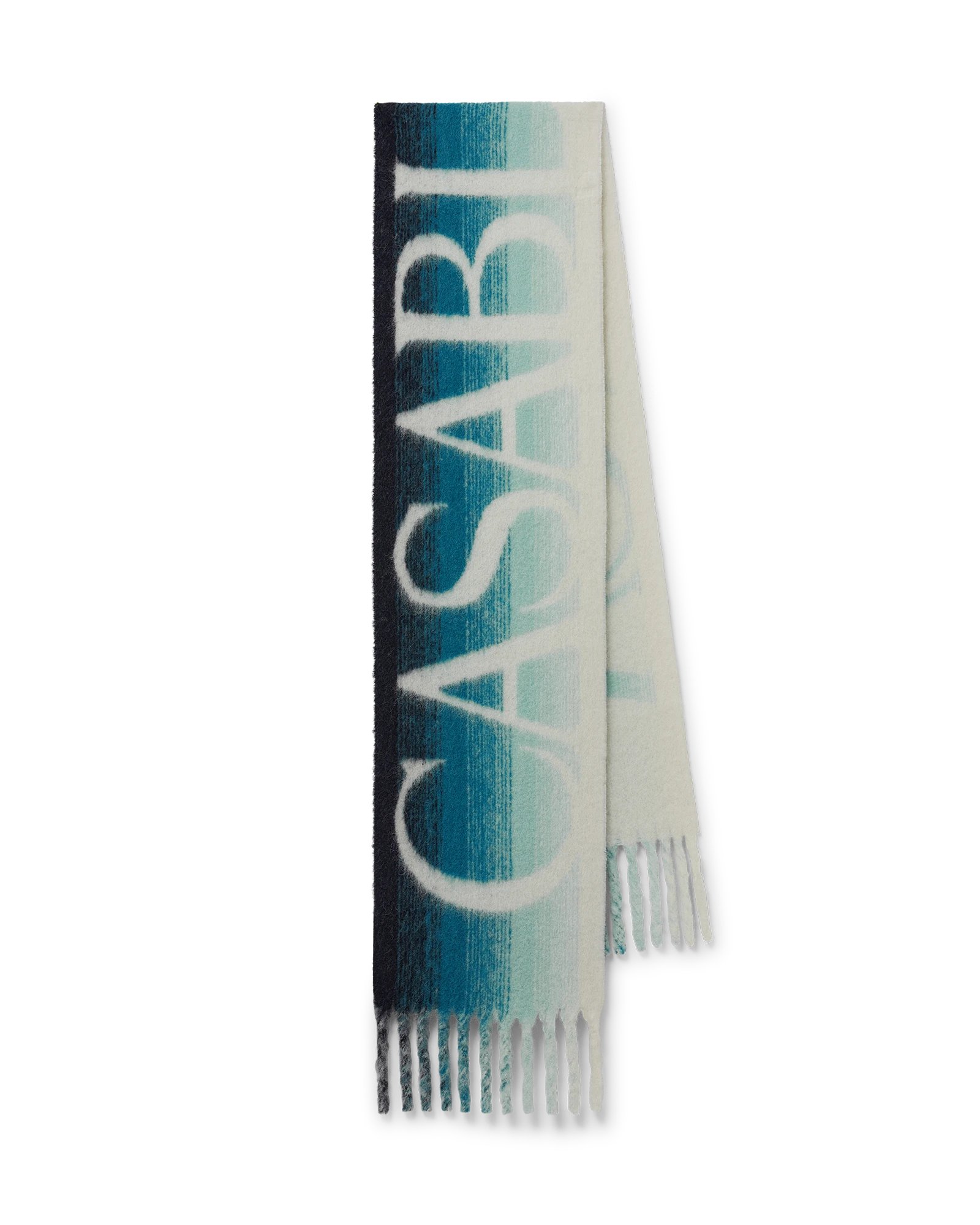 The midnight gradient logo scarf is a knitted design crafted from an alpaca blend fabric. Completed with the Casablanca logo across the length of the scarf. and fringes at both ends. Measures: W 30cm x L 200cm