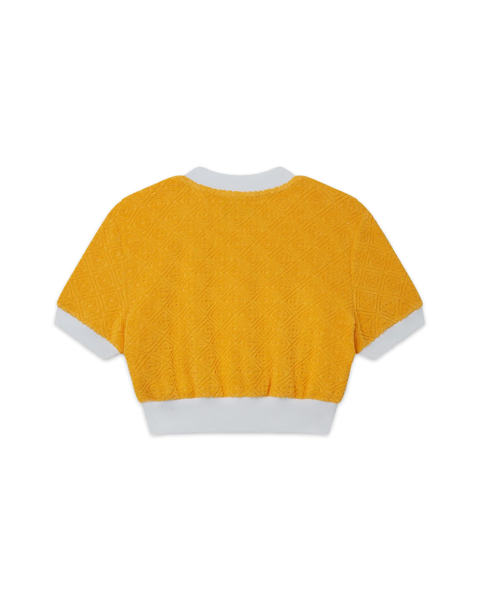 The Monogram Terry Top takes on Casablanca Paris’ sportif aesthetic with our signature diamond logo branding. Crafted from a terry towel fabric with a white rib finish.
