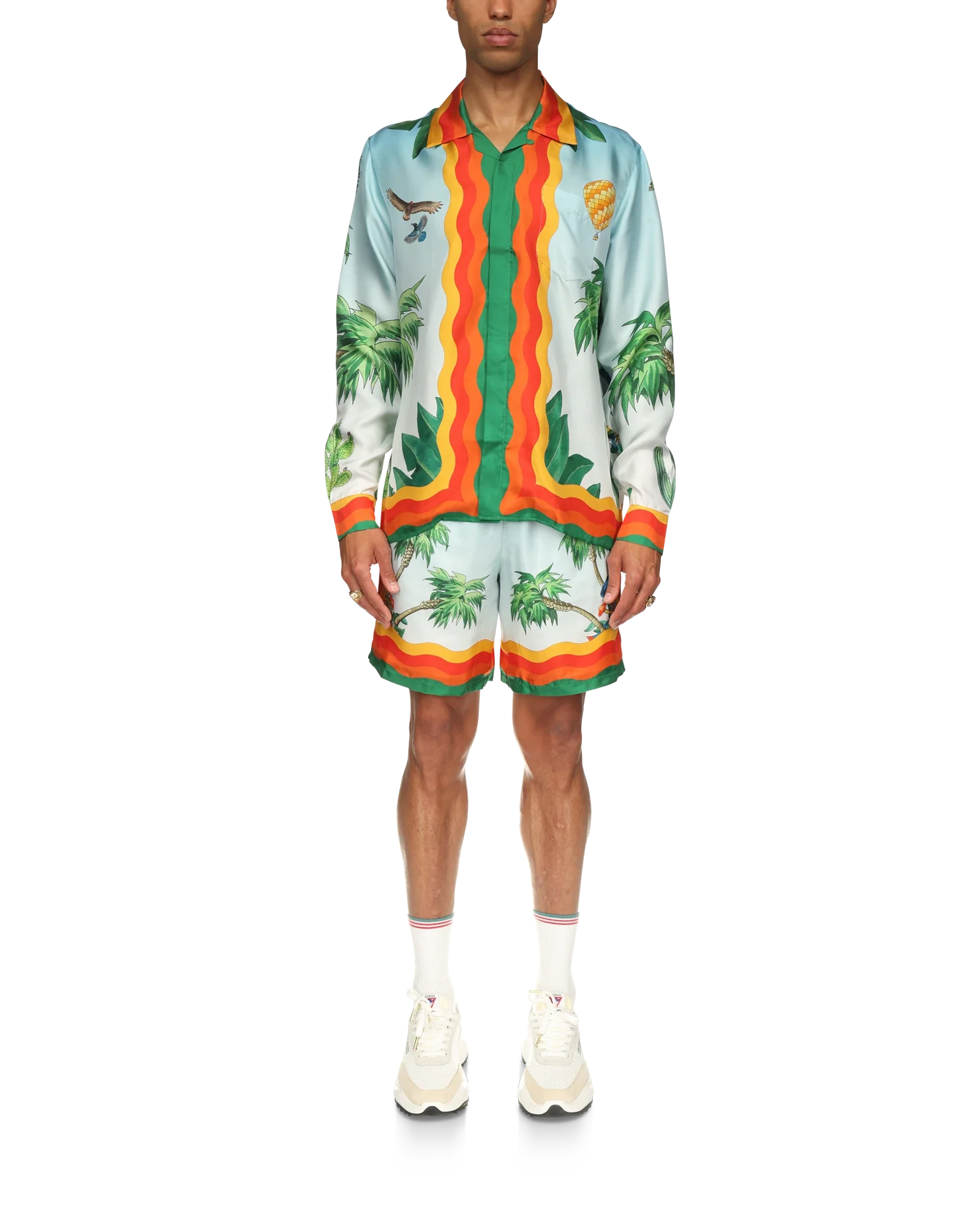Palm Springs Tennis Club Cuban Collar Long Sleeve Silk Shirt