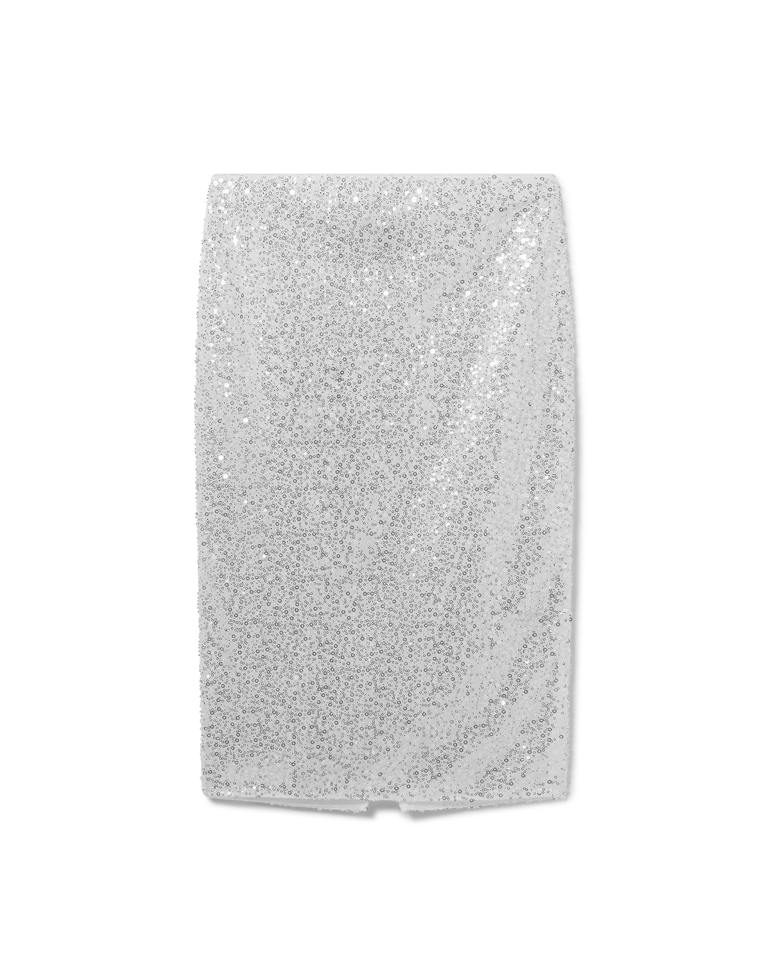The sequin skirt is a mid-length design crafted from a sequin embellished fabric completed with a blind side zip.
