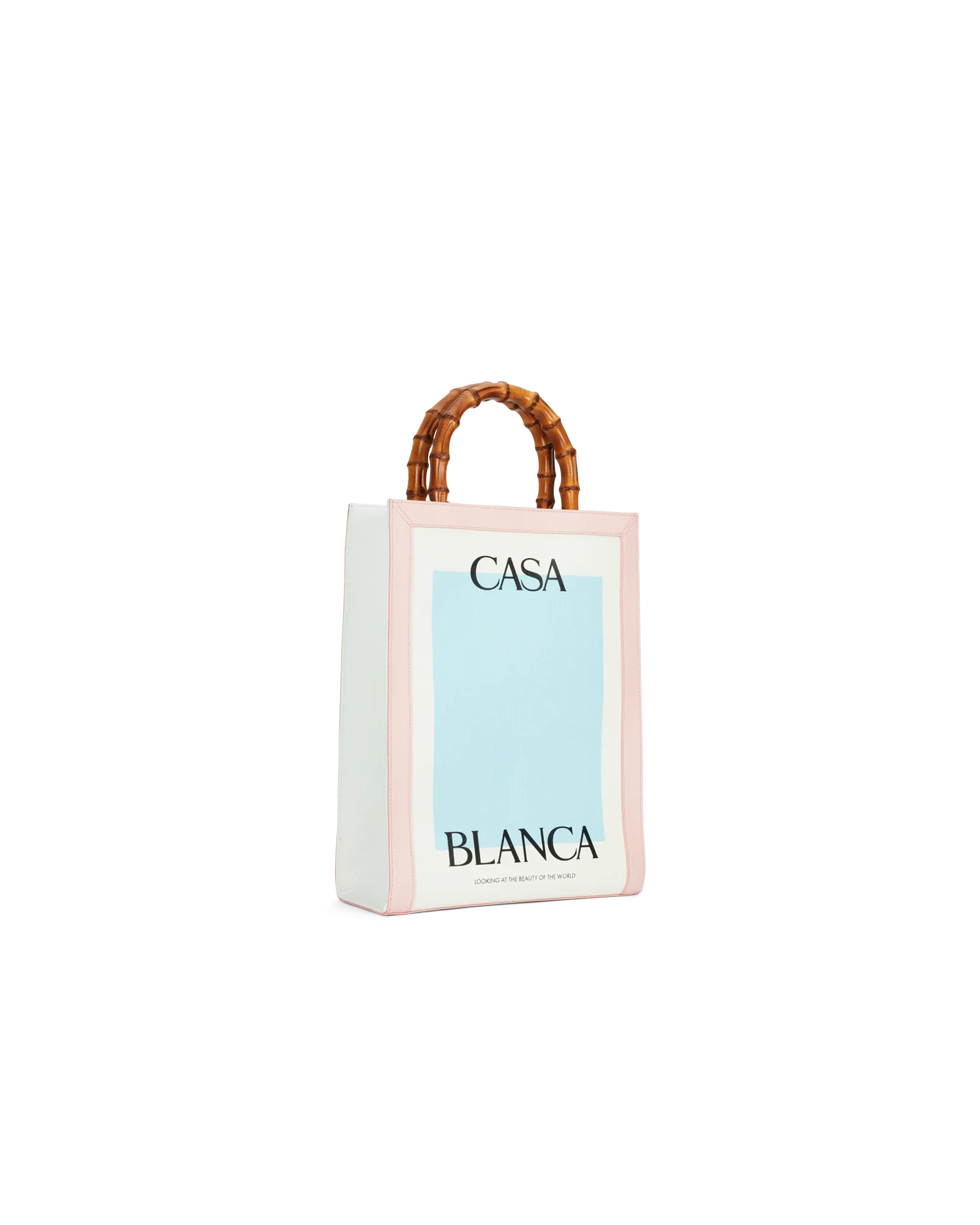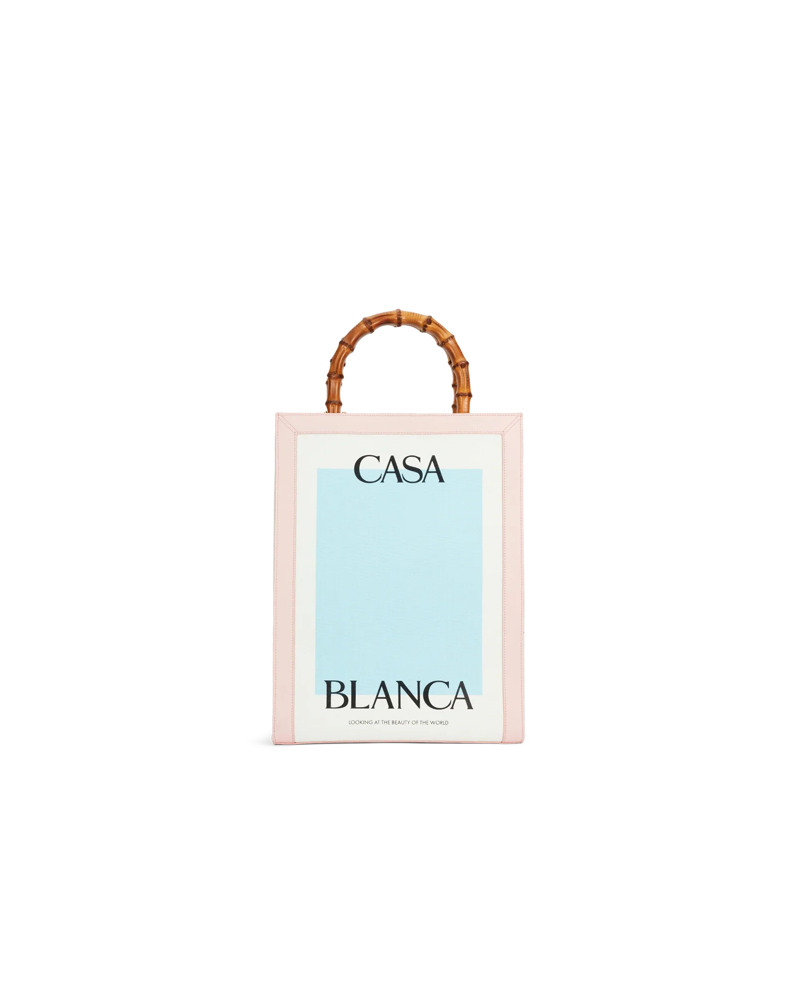 20% Calf Leather (Italian) 80% Cotton. Handle: 100% Bamboo. Hardware: Brass/Zamac.