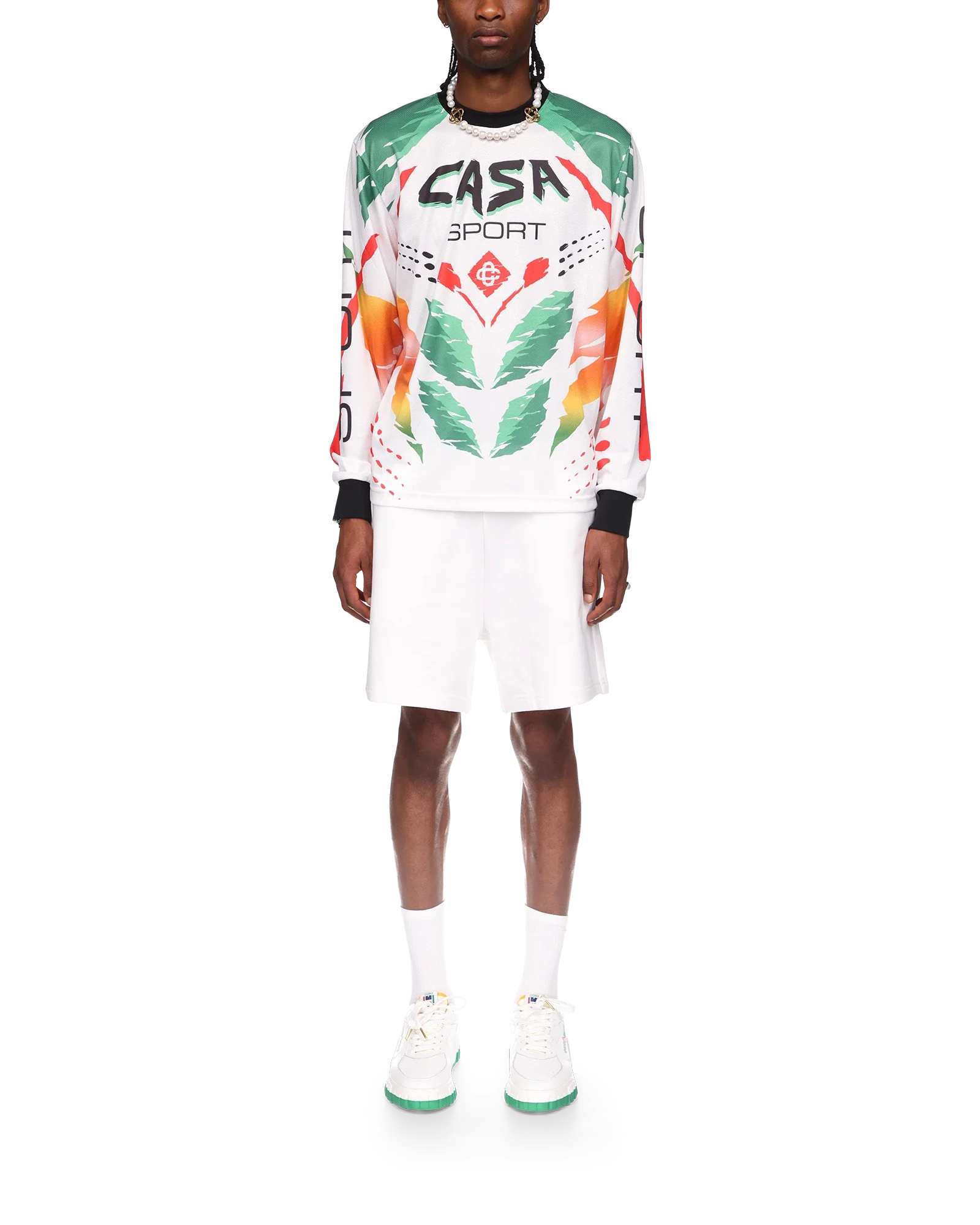 The Casa Moto long-sleeve t-shirt is a sportswear-inspired printed design featuring the house’s interlocking CC logo and the season’s warm colours representative of the rich exchanges across cultural disciplines in African art. music and film. Completed with a contrast rib collar and cuffs.