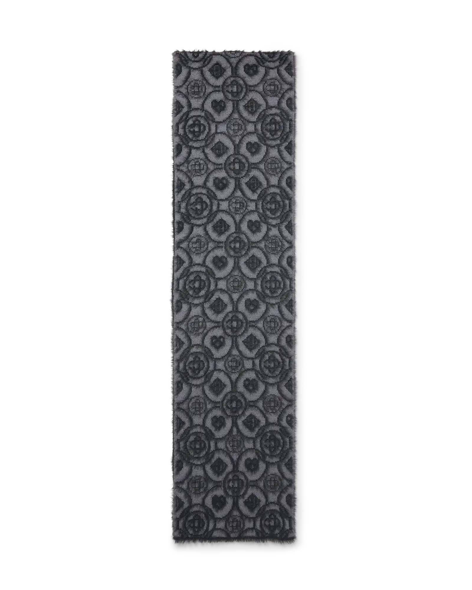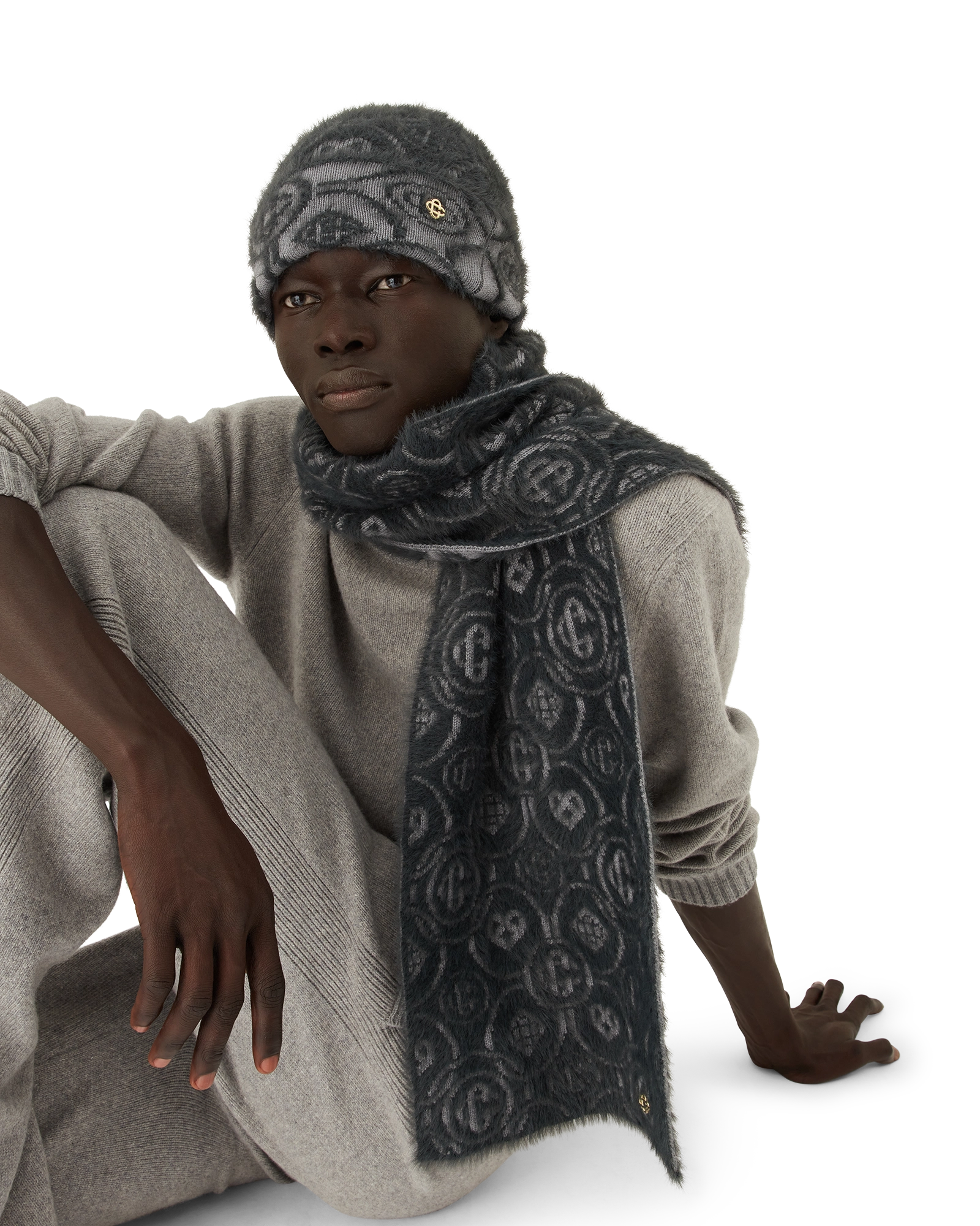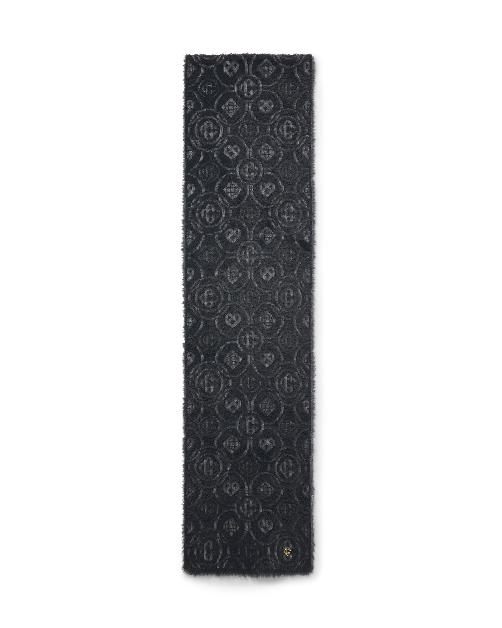 The fluffy monogram mohair scarf is a reversible knitted design featuring the house’s heart and interlocking CC monograms.