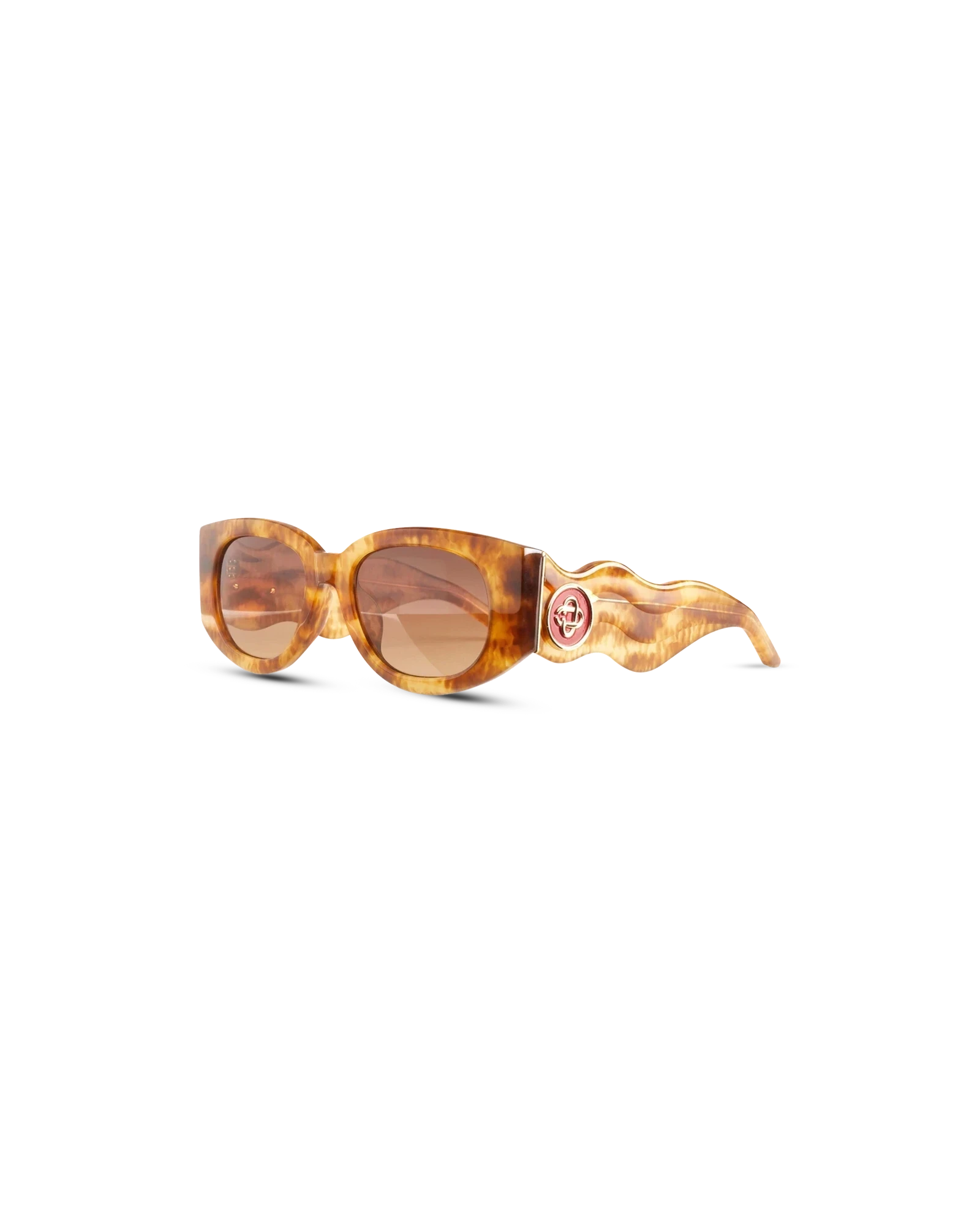 The Memphis sunglasses are a D-shaped frame style inspired by the Memphis wave design movement crafted from tortoise-shell acetate and nylon gradient lenses. featuring 18k gold-plated hardware and hidden Laurel branding details on the temple tips. Completed with the house’s signature diamond monogram logo positioned at the temples. This product comes with a custom Casablanca box. cleaning cloth. warranty and product detail booklet.