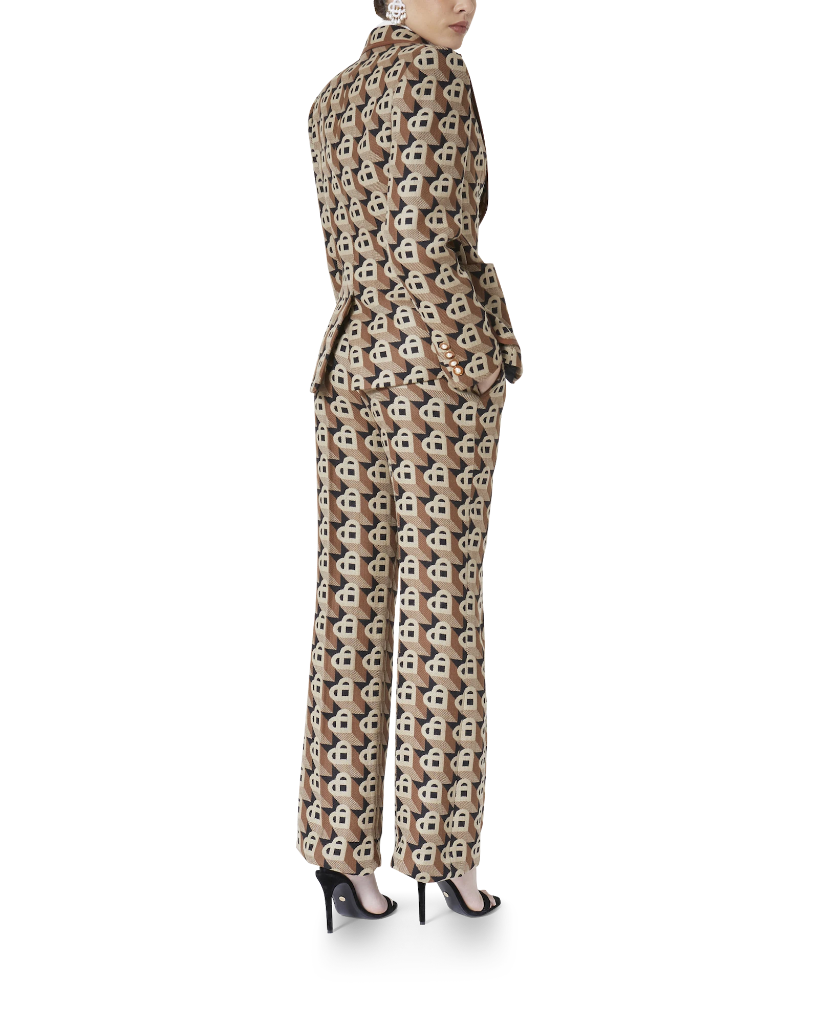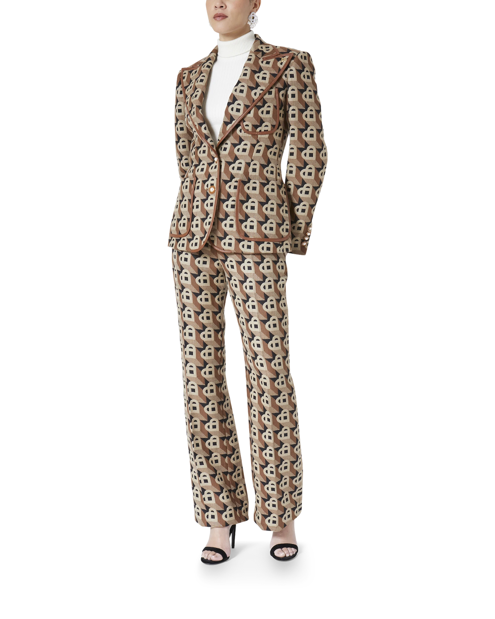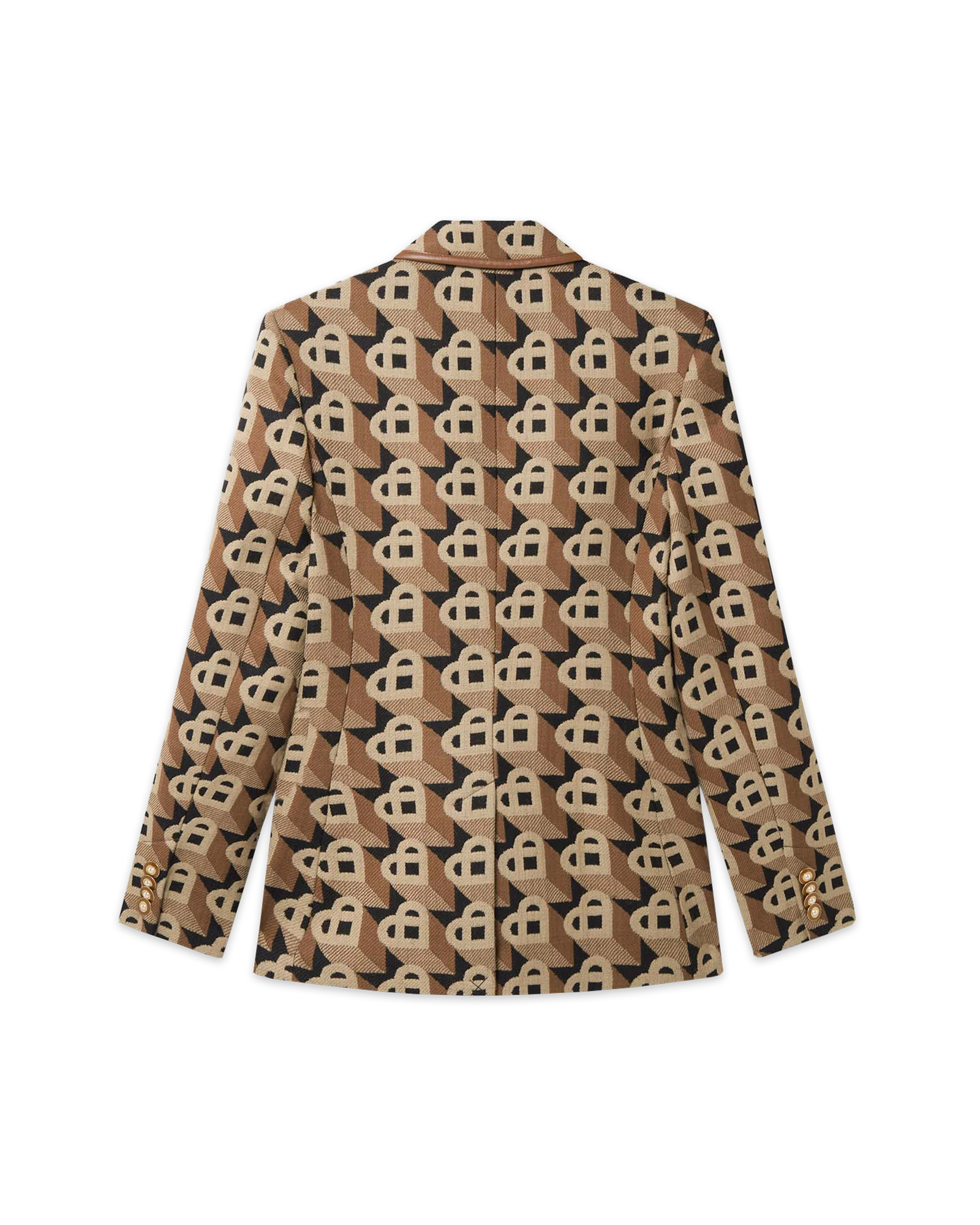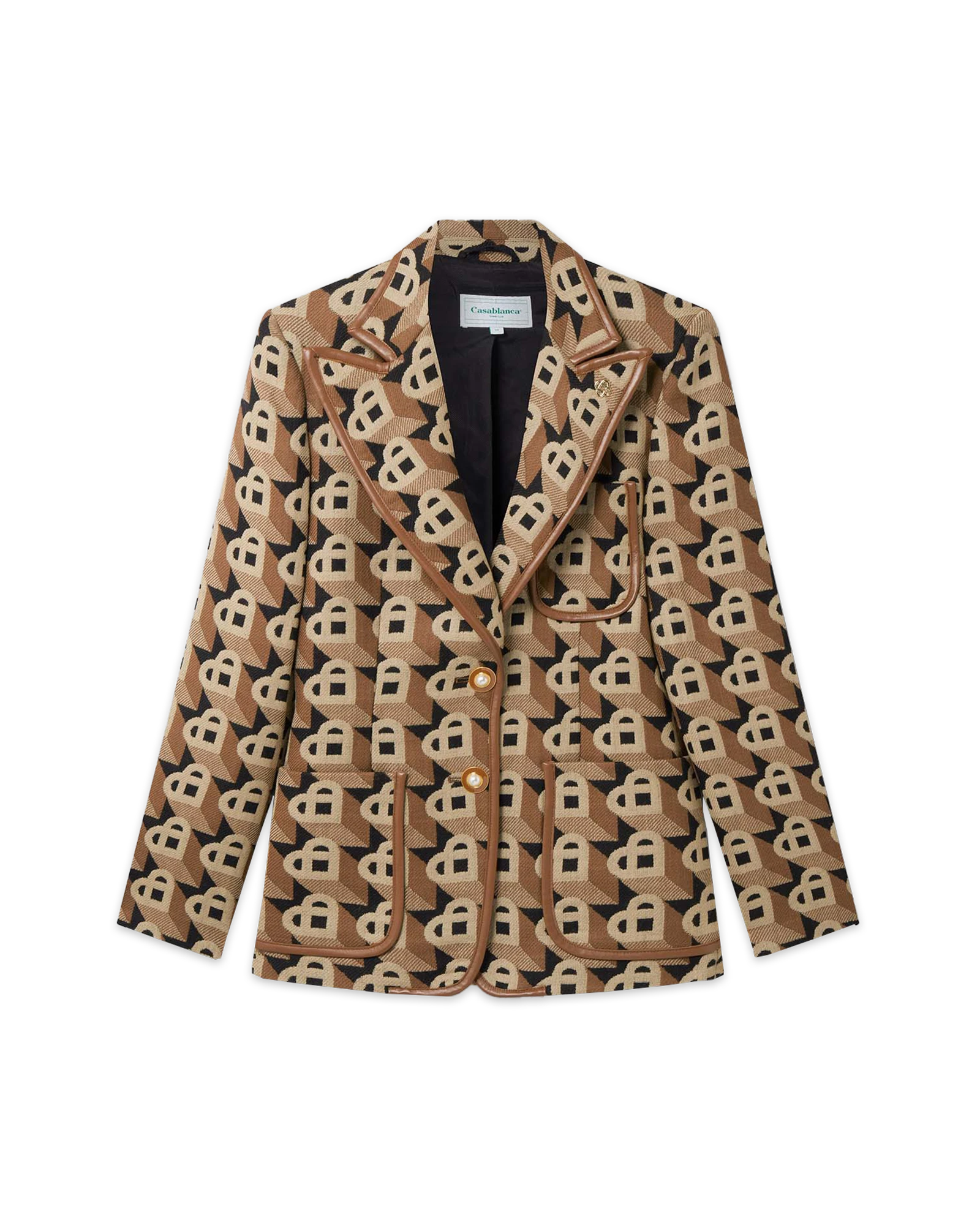The Heart Jacquard Single Breasted Jacket is a classic tailored jacket featuring an all-over heart monogram jacquard design. Completed with a front lapel. single front button and cuff fastening. Intended to be worn with its coordinating trousers.