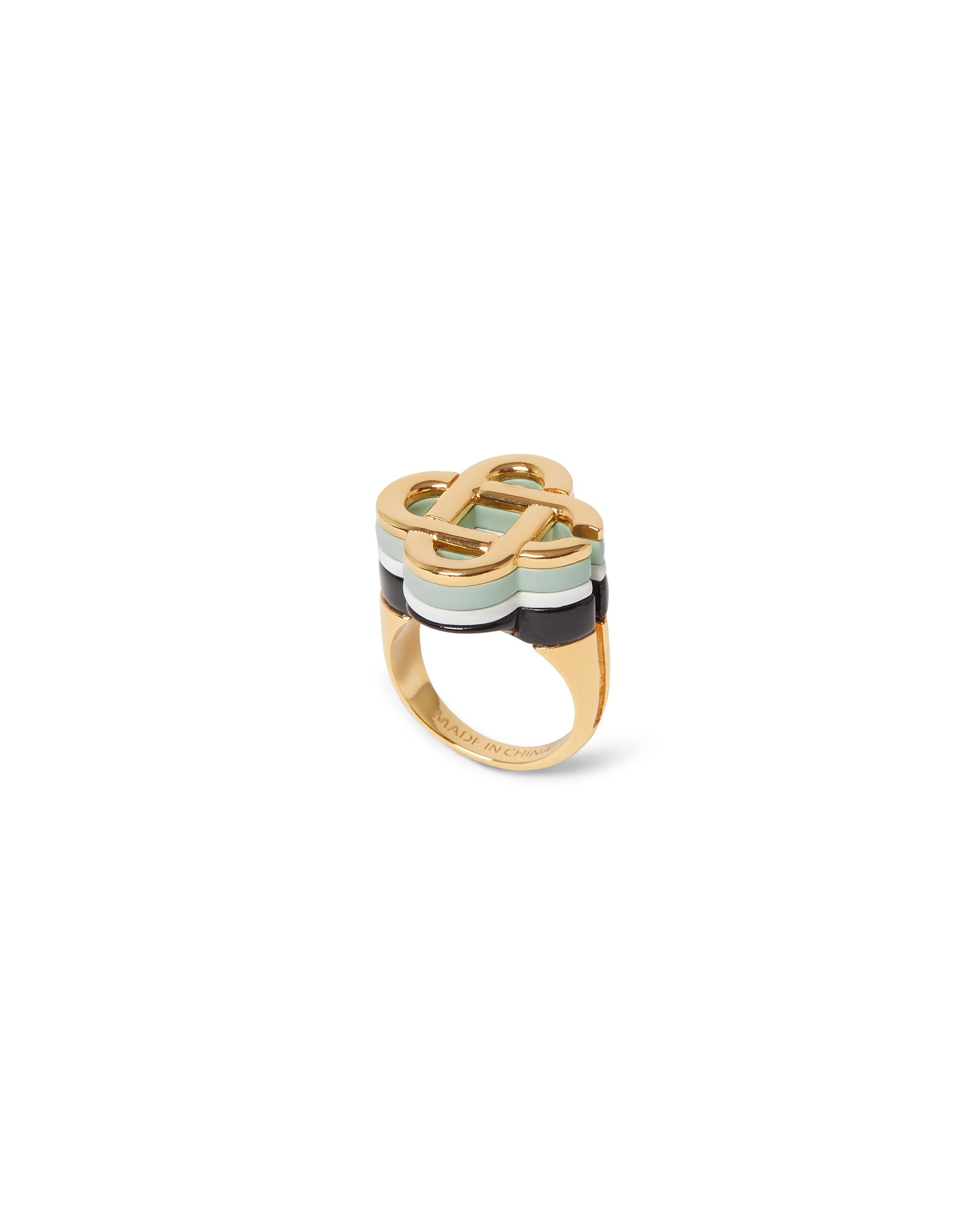 The hiking stacked ring features the Casablanca interlocking CC insignia in a stacked head. Completed with gold-plated shanks. This piece comes with a gift box. branded dust bag and product detail booklet.