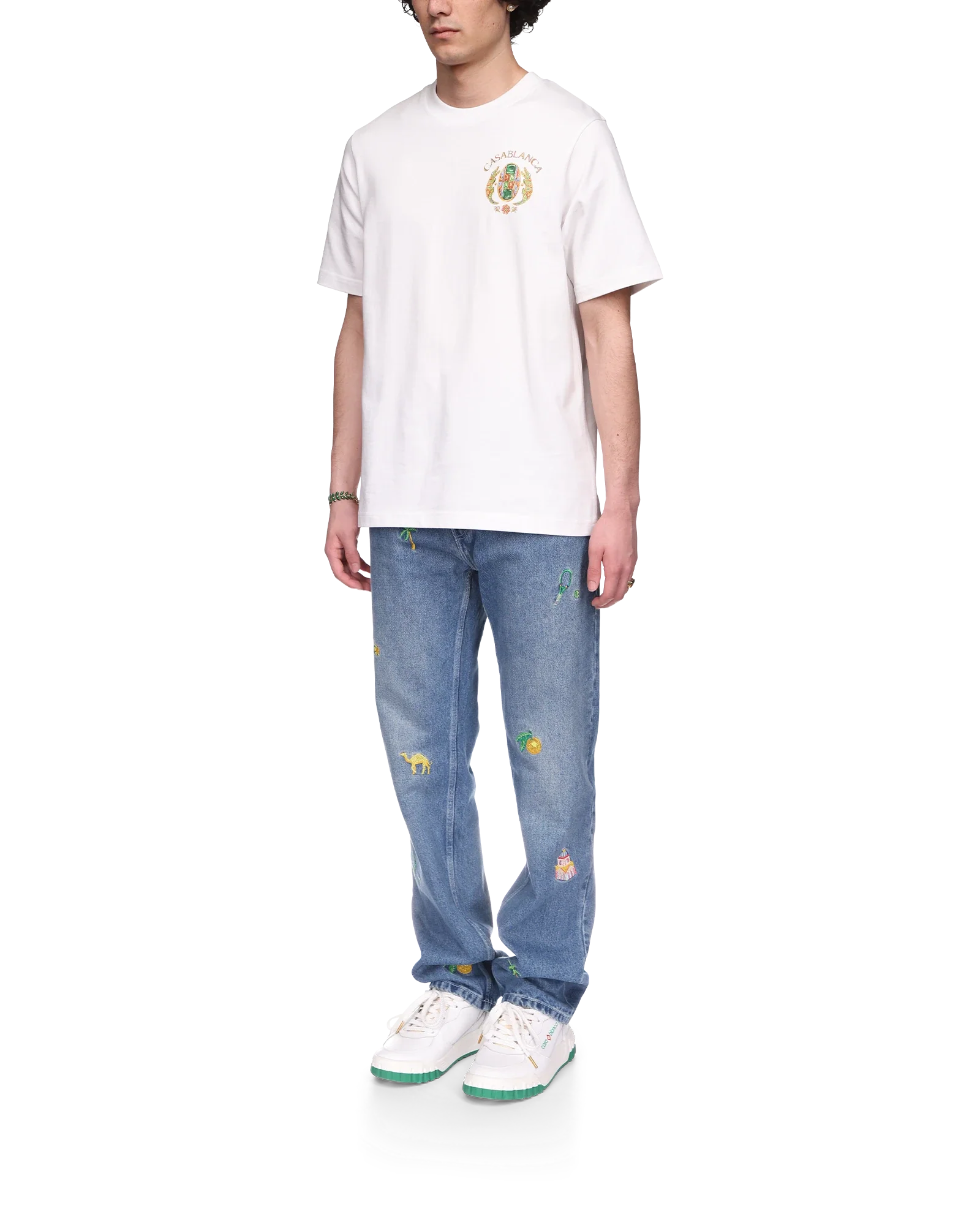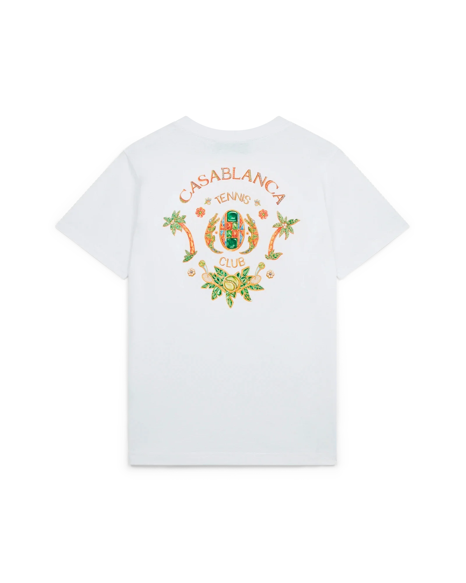 The Joyaux D’Afrique Tennis Club t-shirt is a short-sleeve printed design crafted from organic cotton and features the house’s signature artwork reinterpreted for this season with a new take on our jewellery style blended with our traditional tennis club layout. with the elements being beautiful pieces of jewellery. Completed with a classic crew neck.