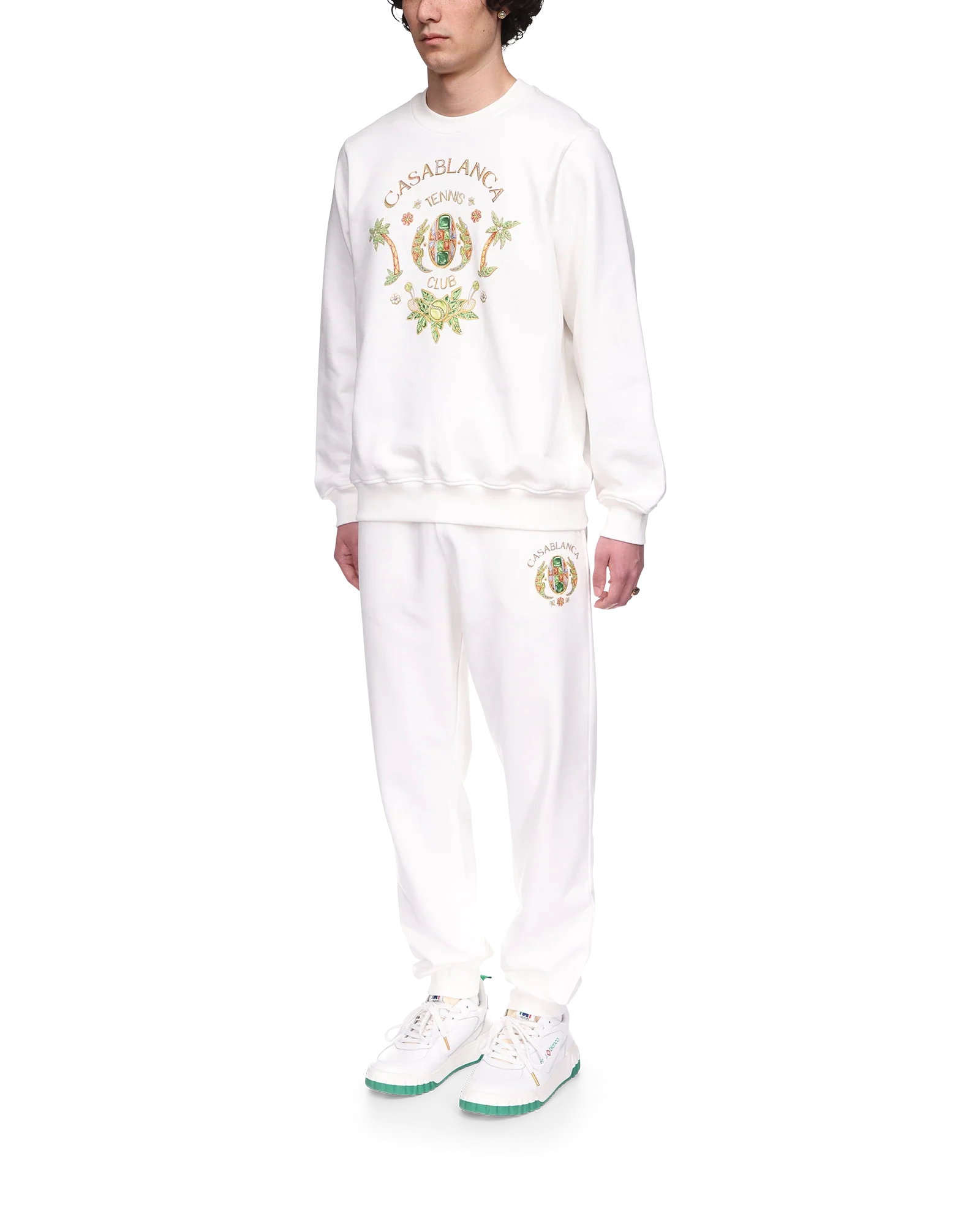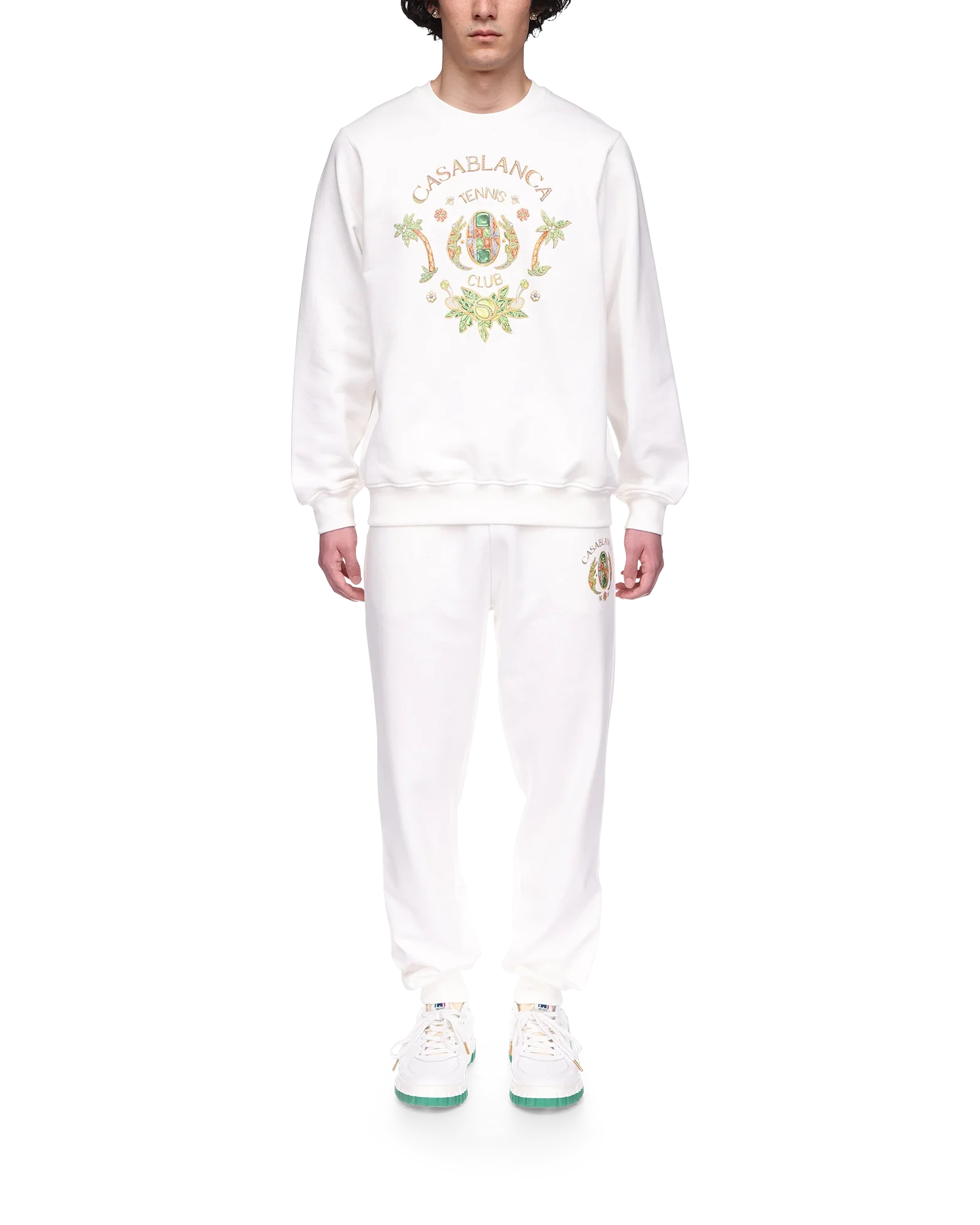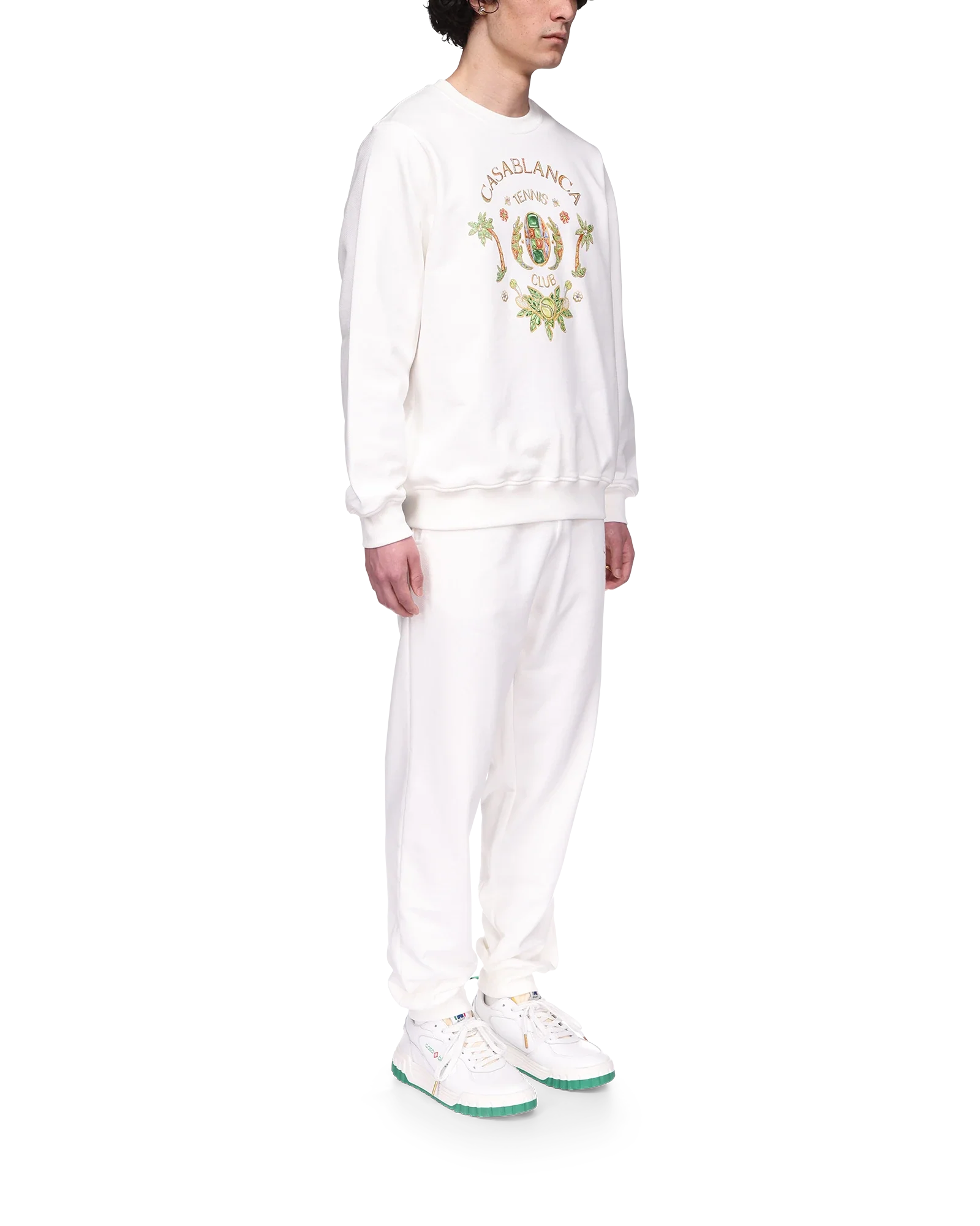The Joyaux D’Afrique Tennis Club sweatshirt is a printed long-sleeve design featuring a seasonal Casablanca artwork incorporating nature references from Nigeria and the house’s jewellery designs. Crafted from organic cotton fabric and completed with a classic crew neck and rib finishing.