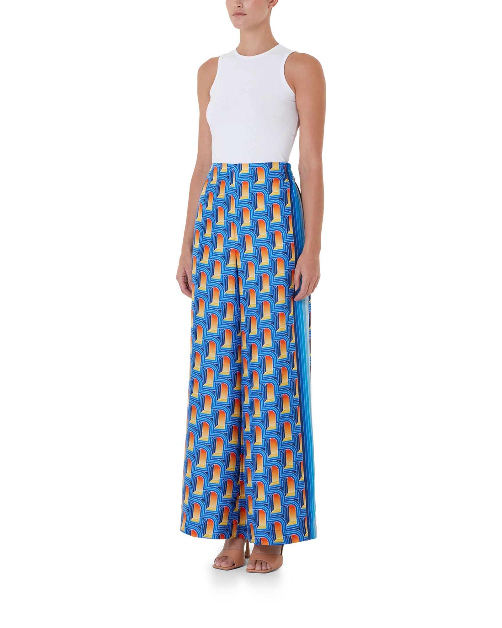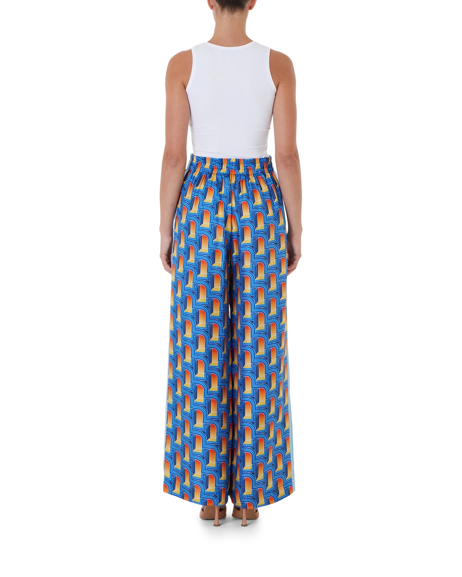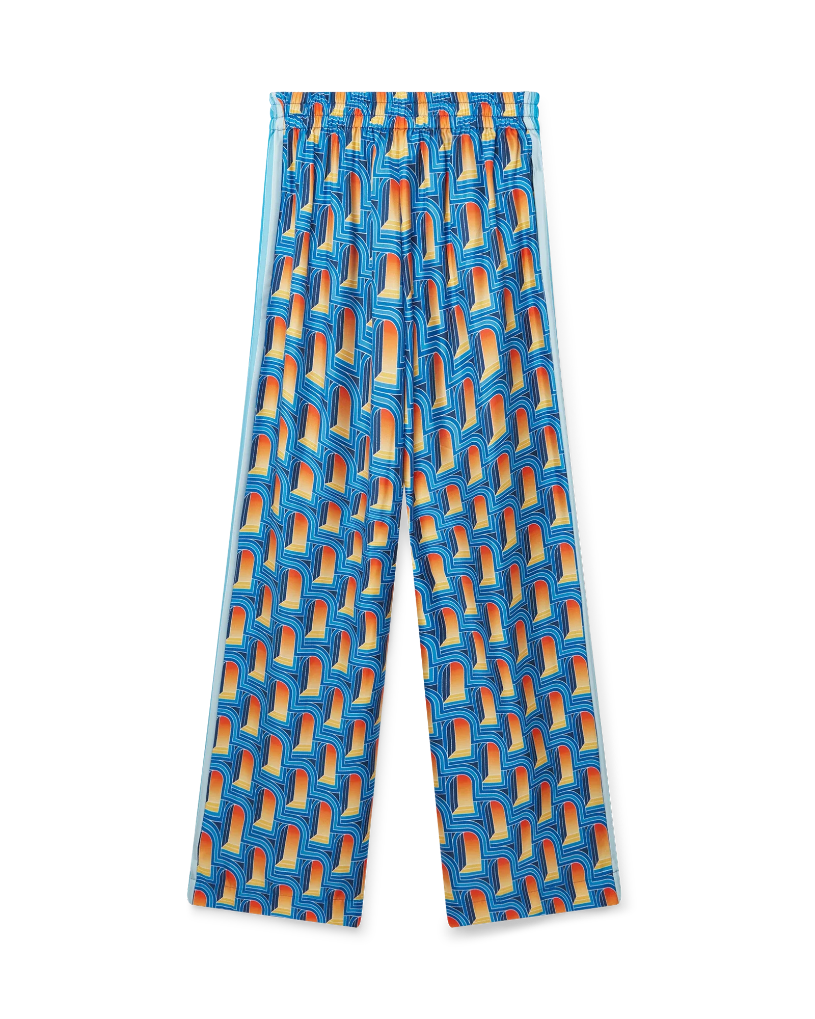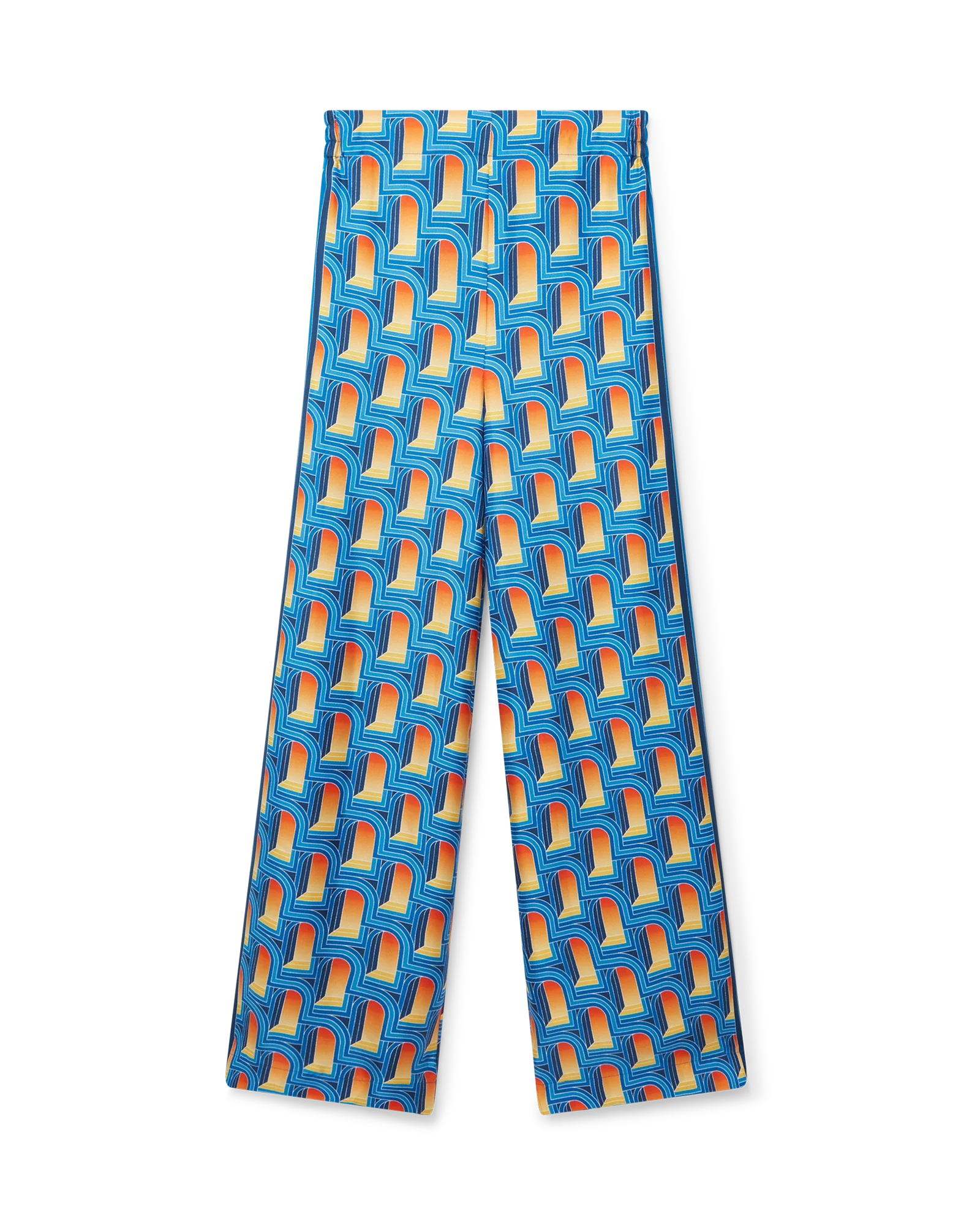Women’s L’Arche De Nuit silk wide leg trousers features the arch print of the season in a nighttime colourway of deep blues.