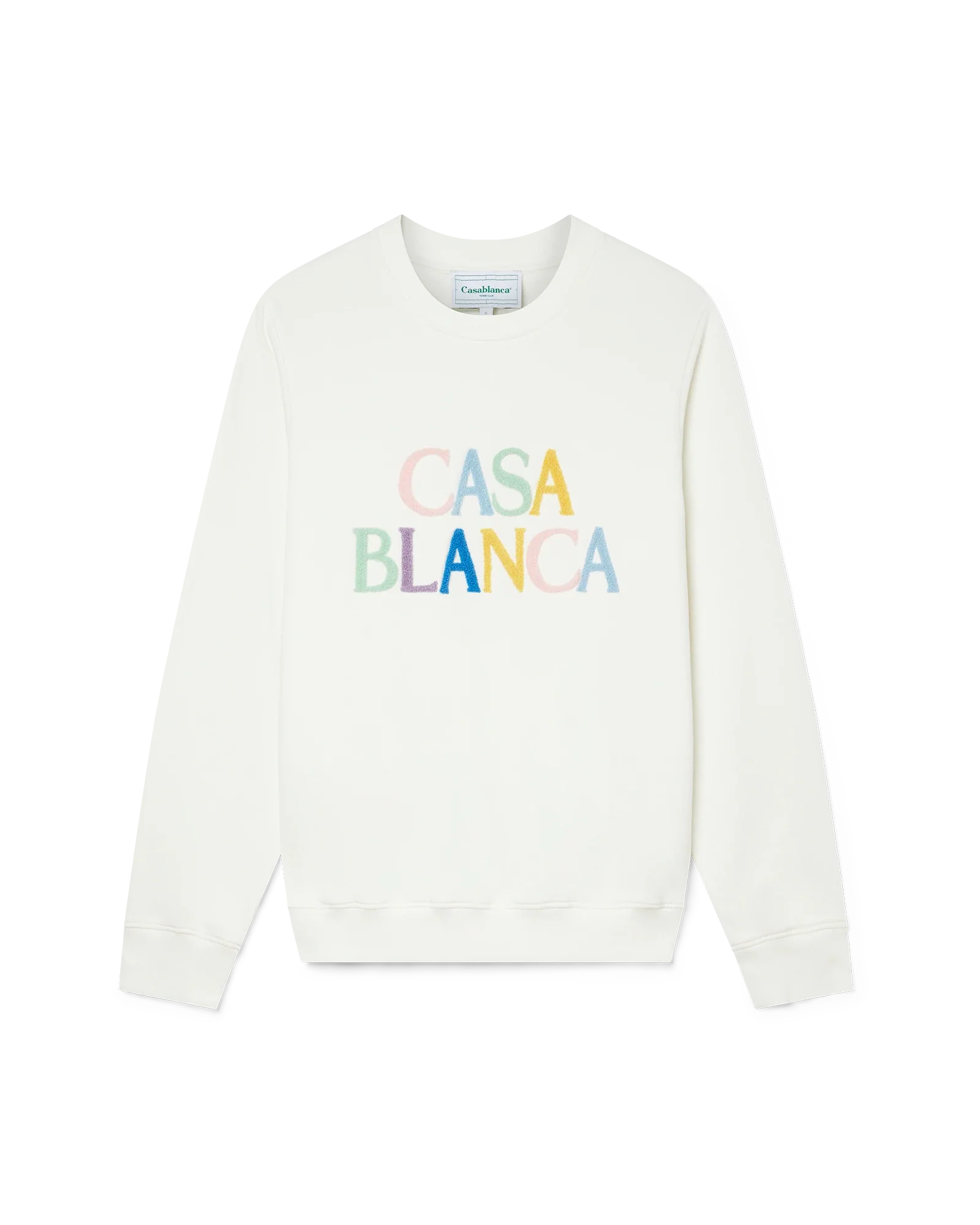 The stacked logo embroidered sweatshirt is the house’s signature jersey style featuring a seasonal logo artwork on the chest. Crafted from an organic cotton fabric in off-white. the sweatpants are finished with a crew neck and long sleeves.