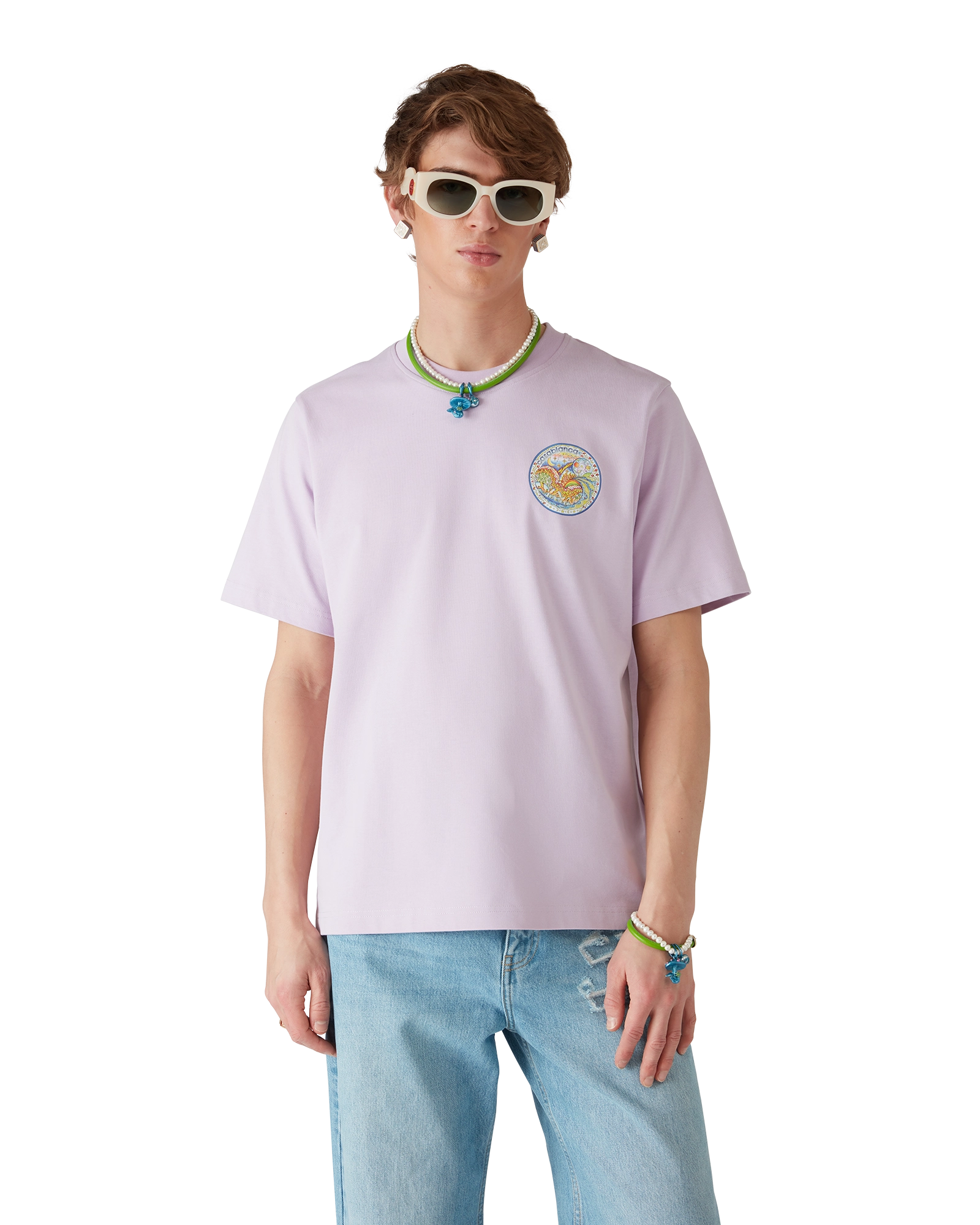 The mini mushroom necklace is crafted from leather and freshwater pearls and features one of the house’s classic design elements. Completed with a blue mushroom charm. and a gold-plated lobster clasp and chain.