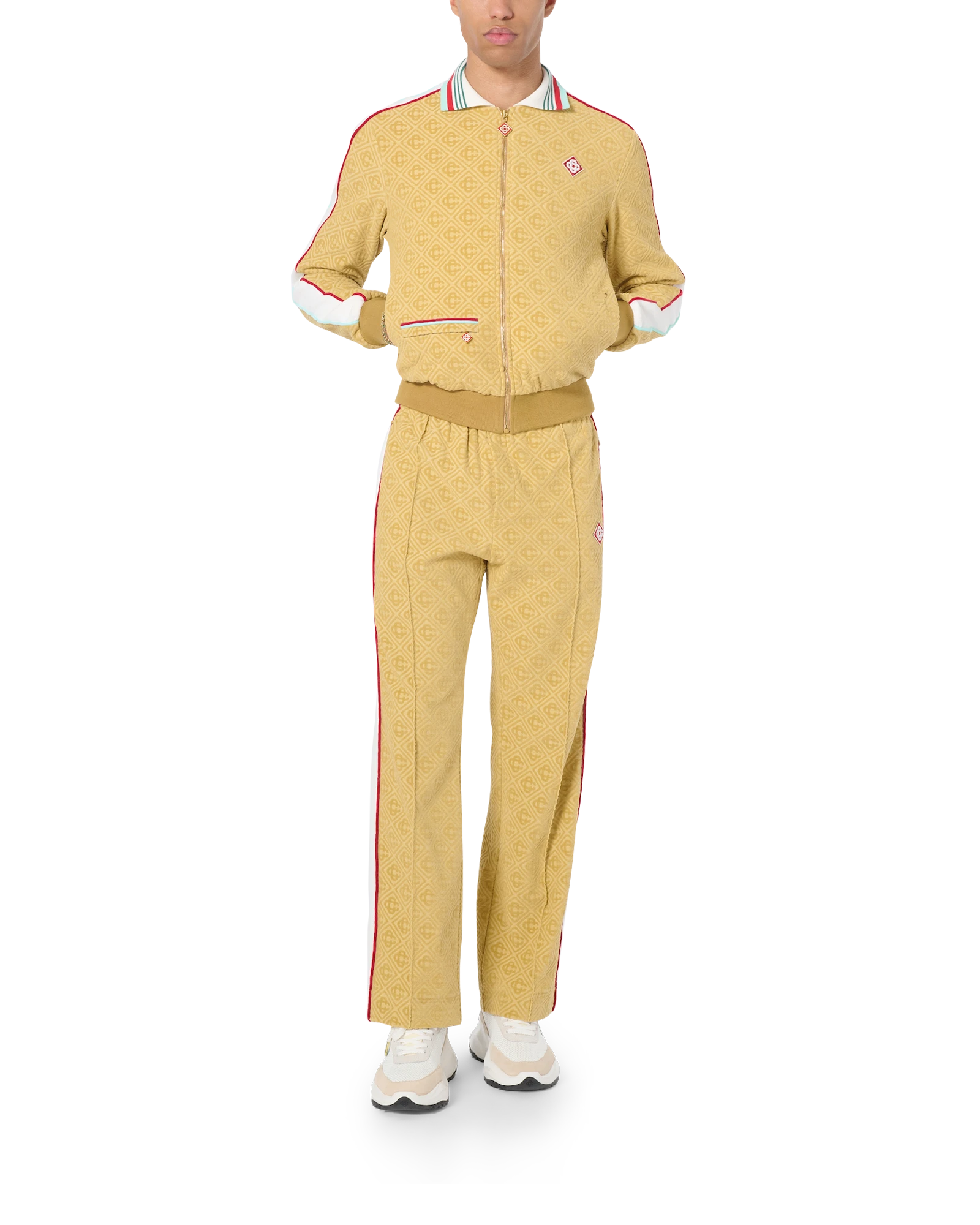 The monogram velour shacket is an elevated sportswear staple crafted from an all-over monogram cotton blend fabrication with the diamond monogram on the left leg. Finished with front zip closure and side pockets.