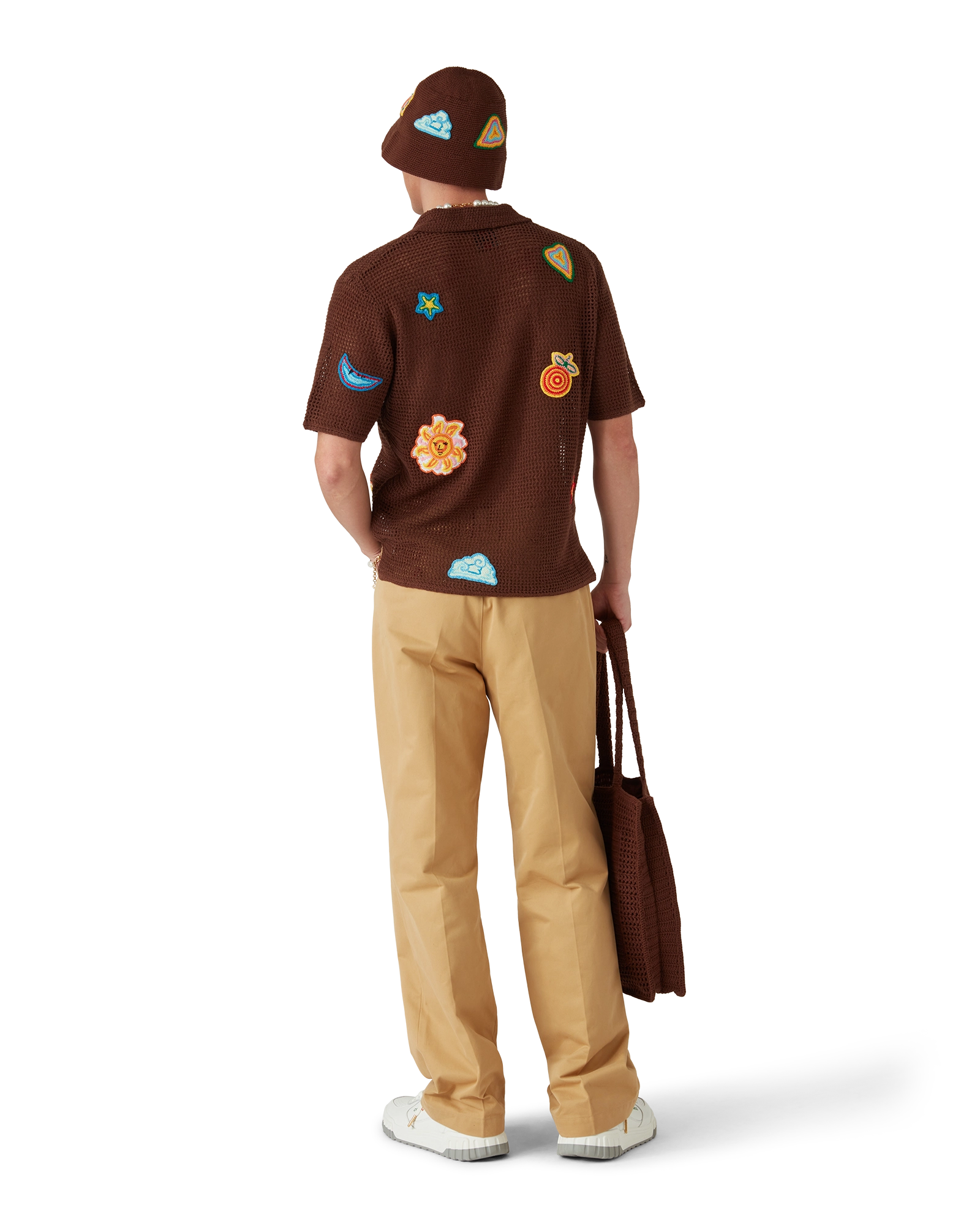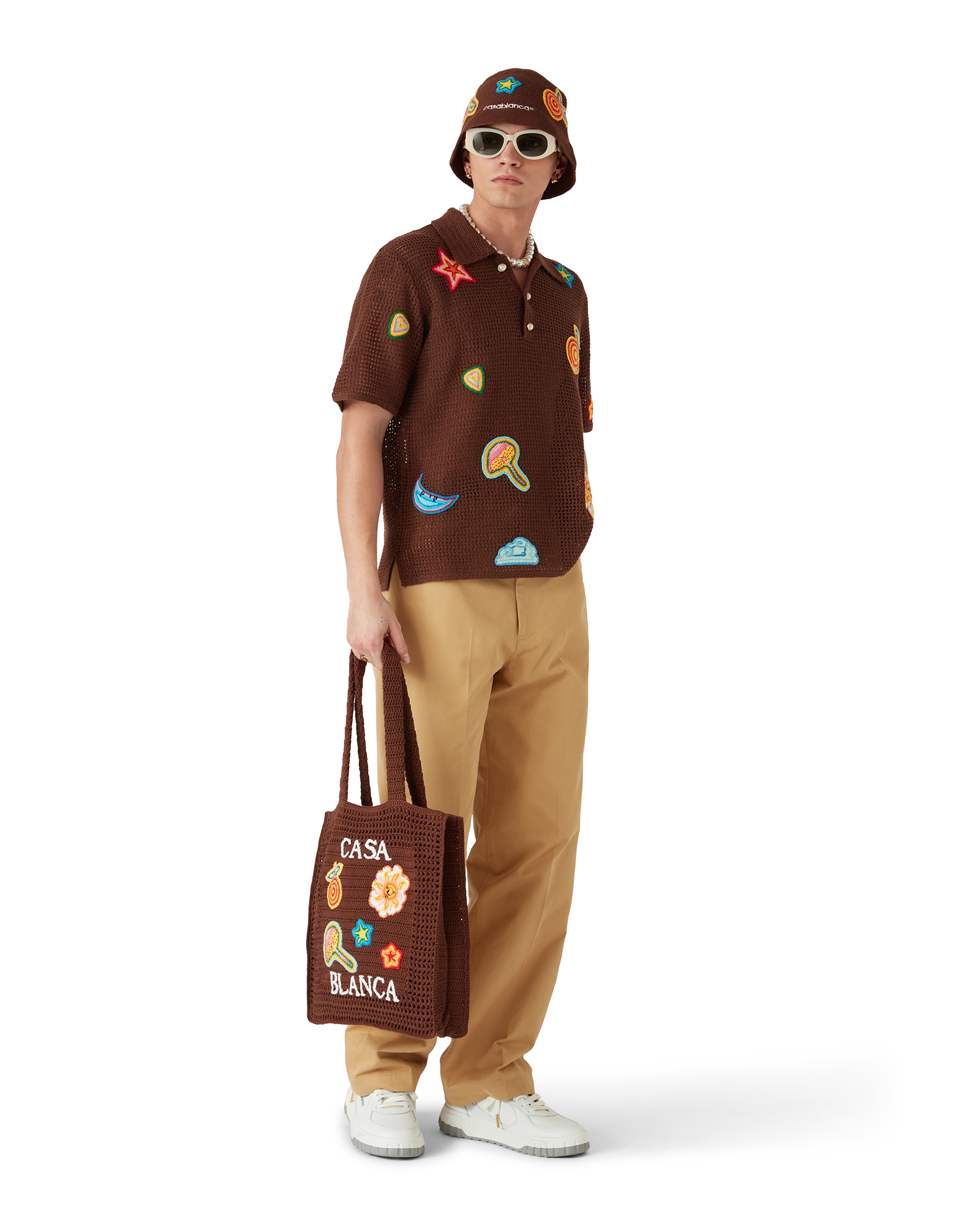 The motif crochet polo shirt is a short-sleeve design crafted from knitted mercerised cotton fabric. Completed with motifs of the house’s classic design elements. signature gold rim pearl buttons. rib collar and cuffs.