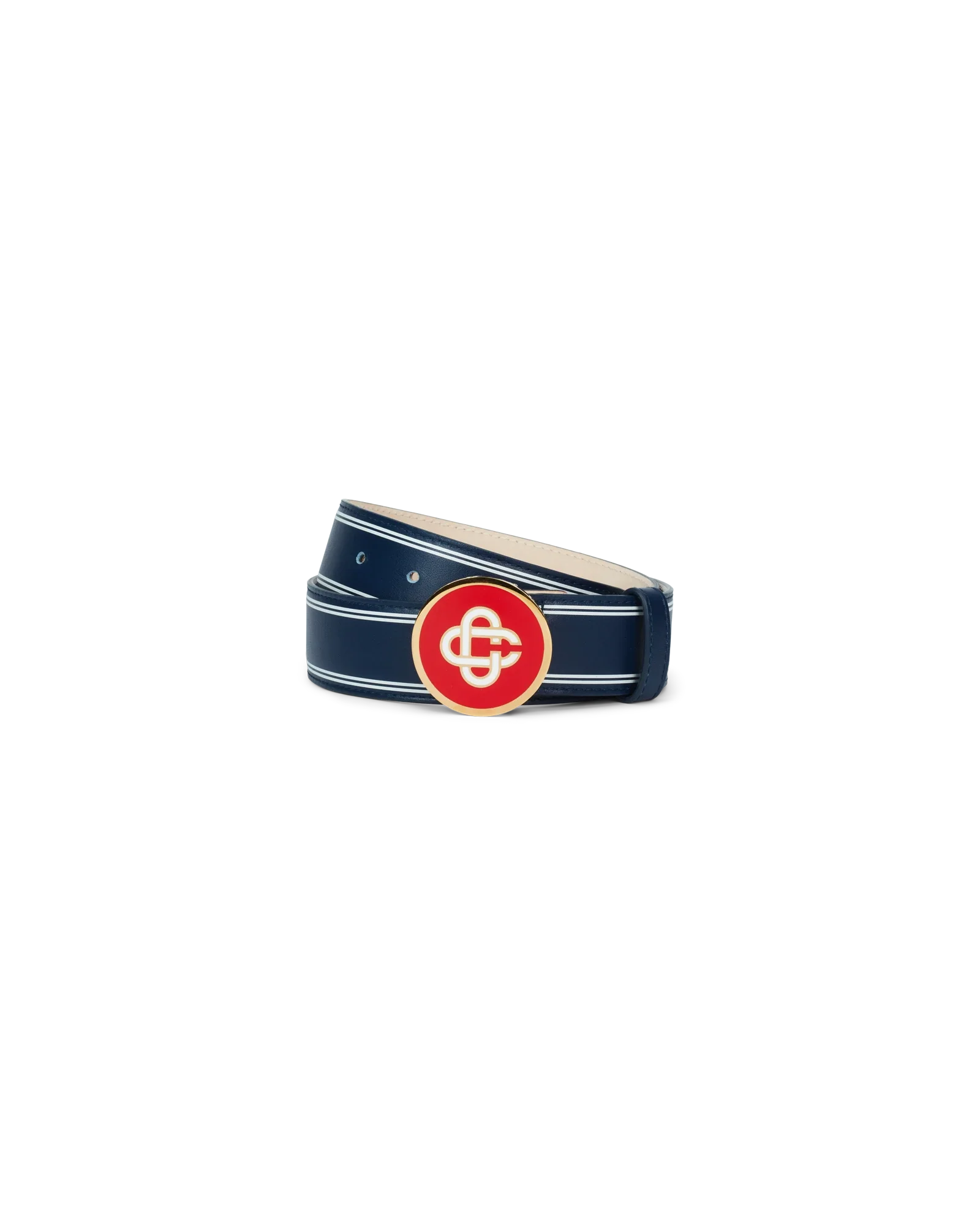Navy Monogram Logo Leather Belt