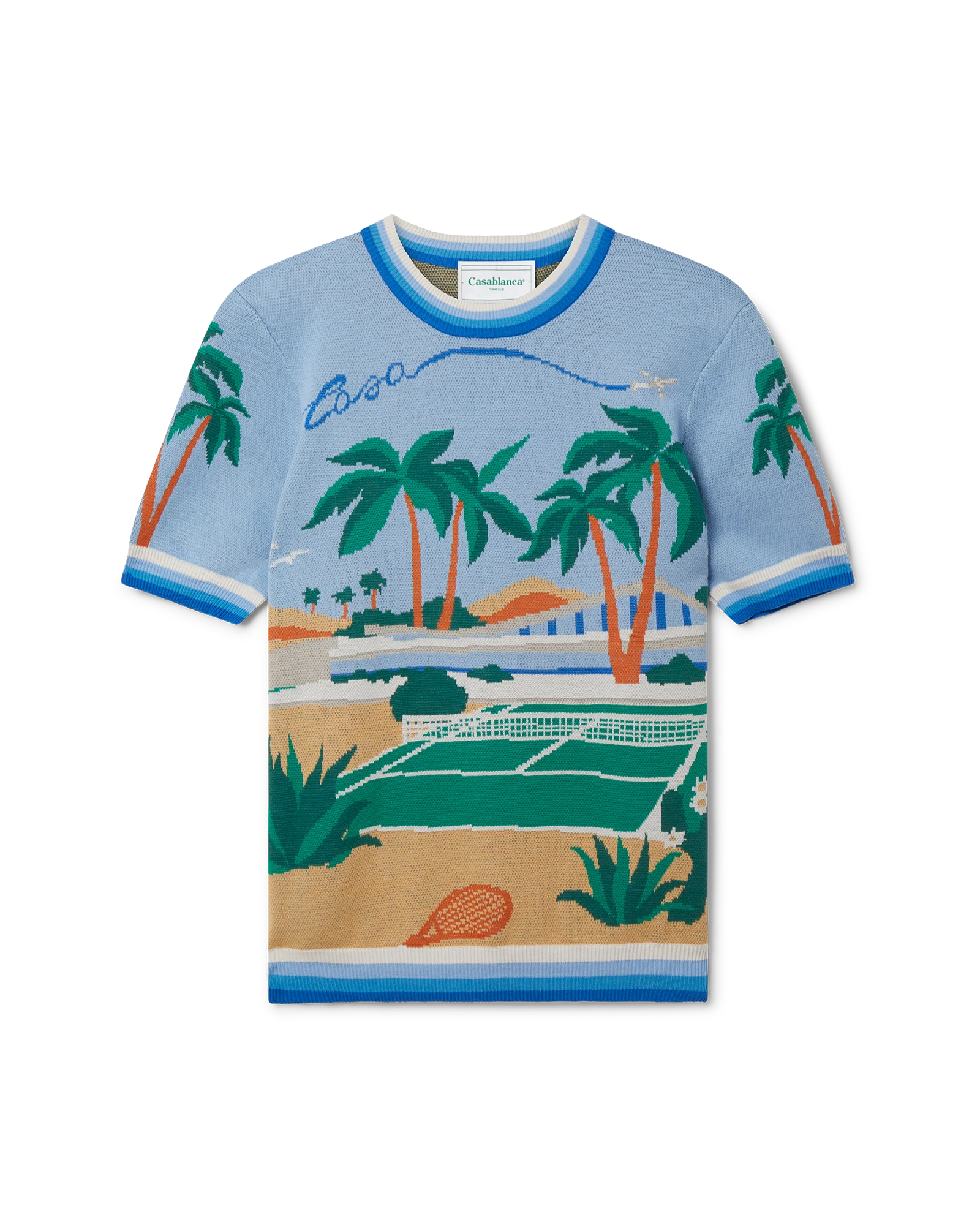 Men’s short sleeve cotton polo shirt finished with a contrast blue gradient collar. hem and sleeves. fastening.