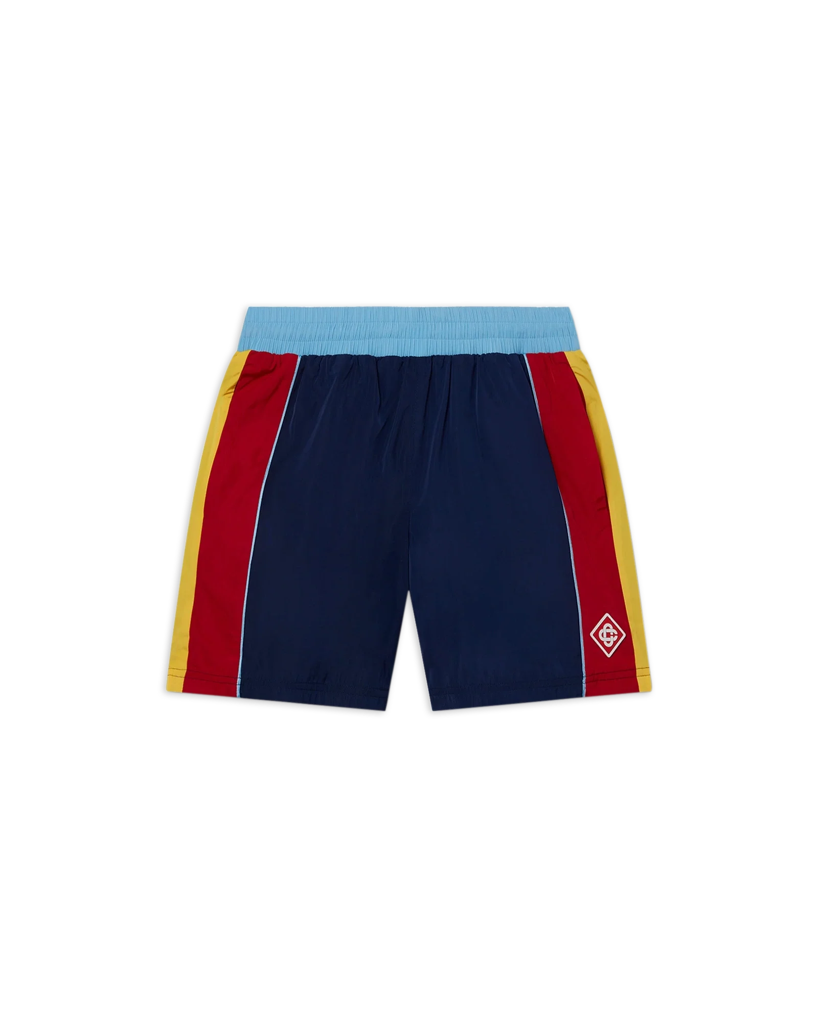 The Side Panel shell suit track short is crafted from lightweight polyester and features the Après Sport logo. Completed with a back pocket. drawstring fastening. contrast waistband and in-seam side pockets.