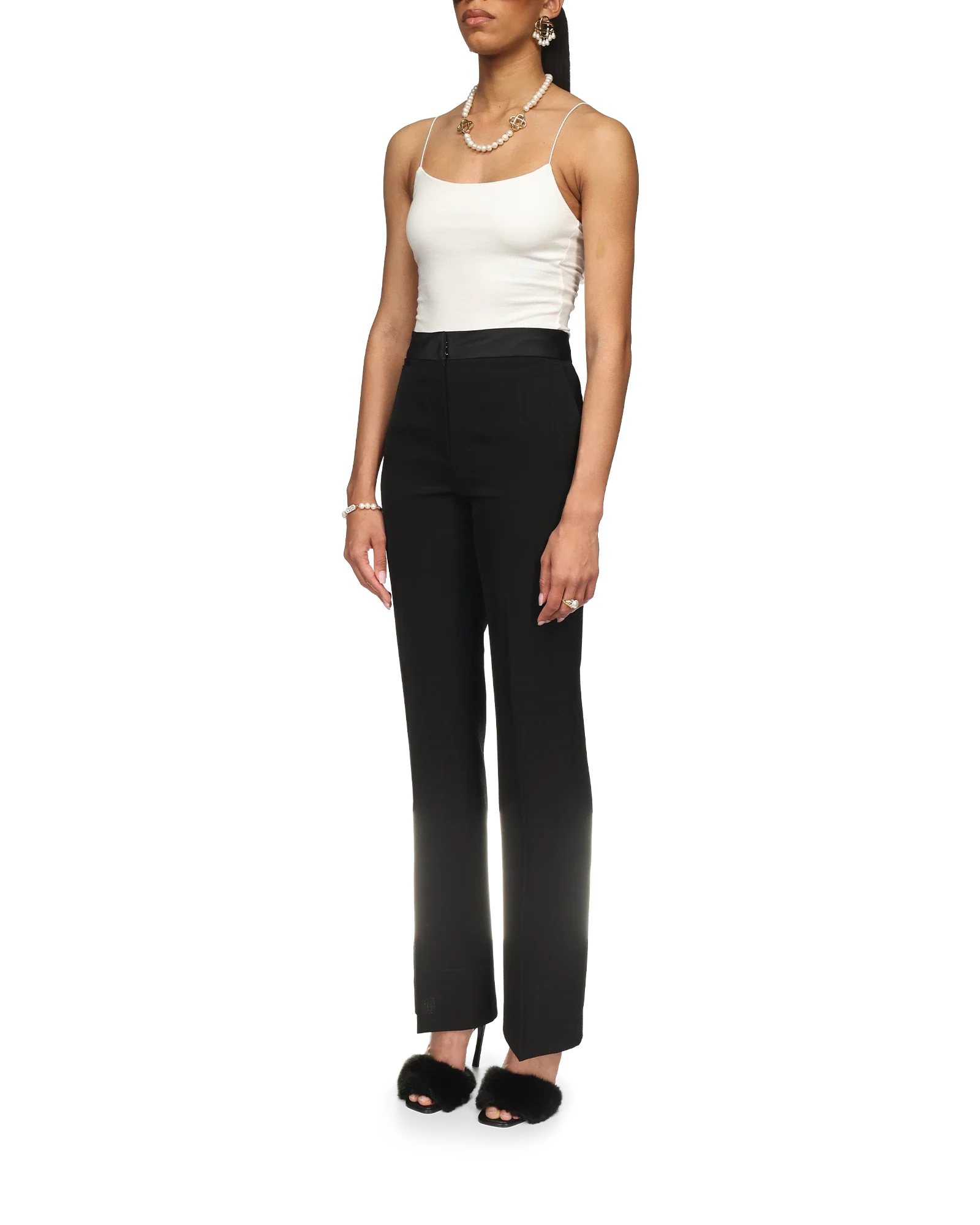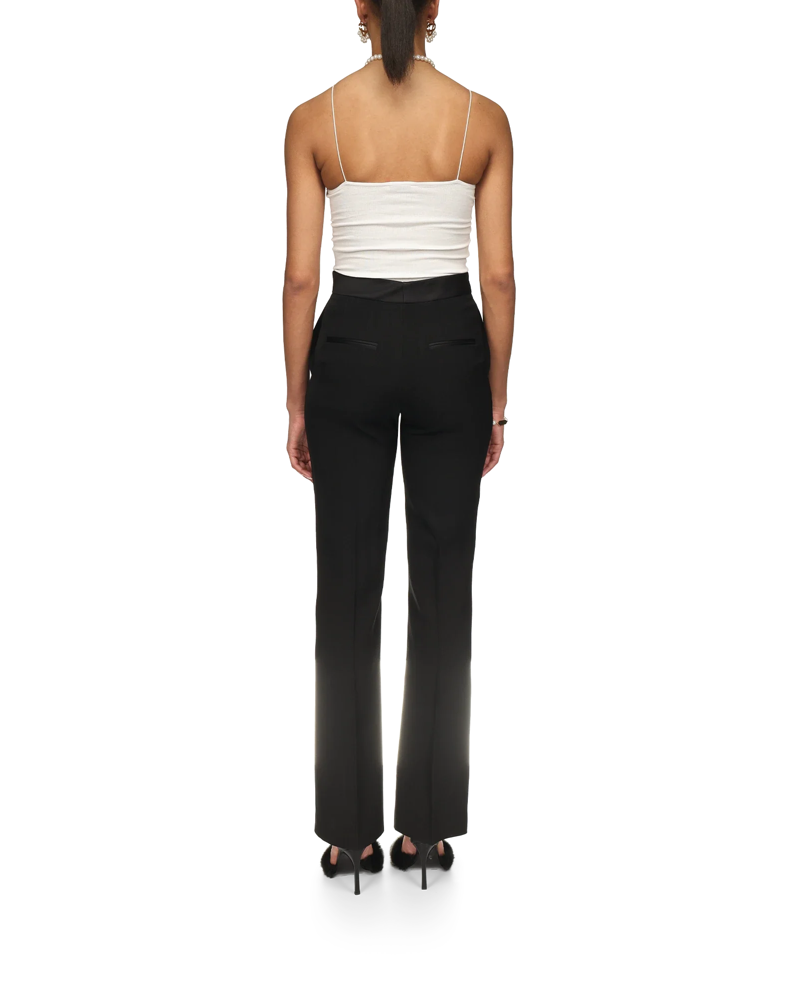 The silk tuxedo trouser is a classic tailored straight-leg design with a satin silk waistband. Crafted from a silk-blend fabric and lined with a cotton-blend fabric. complete with slanted pockets. back pockets. and a Casablanca branded label.