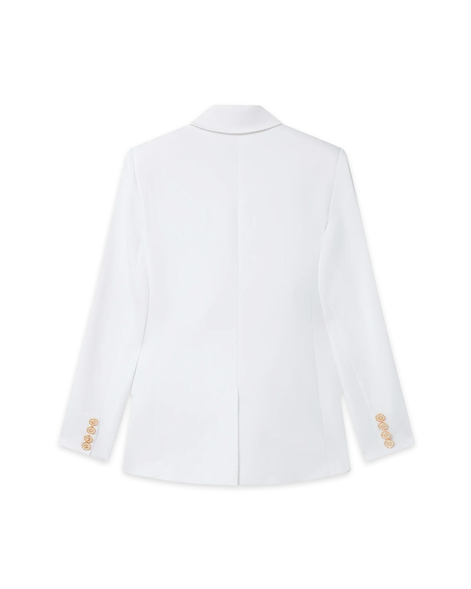 The sports tailoring jacket is a long-sleeve single breasted tailored style crafted from a tricot fabric. featuring the house’s signature diamond monogram logo with white and green stripes on the chest. Complete with notch lapel. pockets with green piping. central back vent. and the house’s signature gold rim interlocking CC enamel buttons.