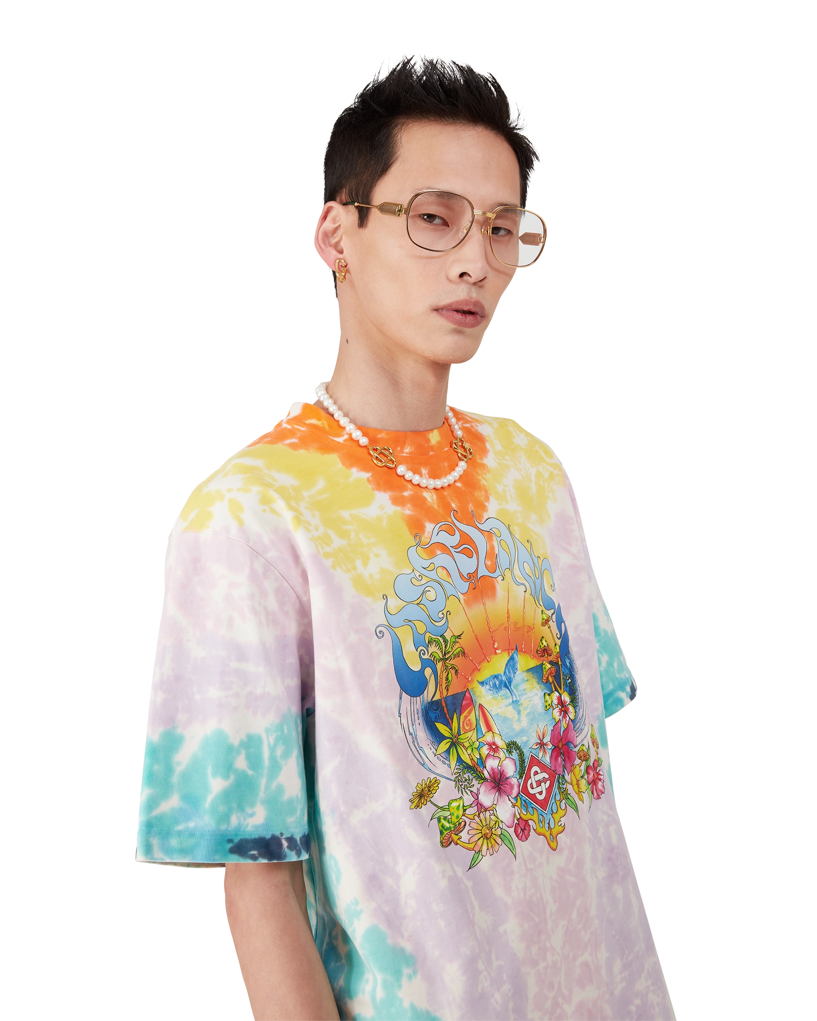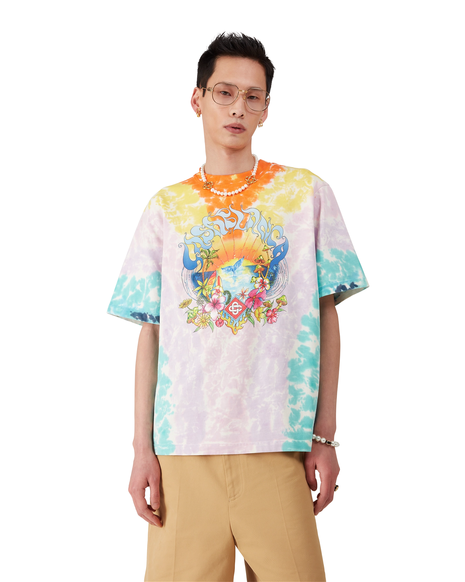 The Surf Trip tie-dye t-shirt is a short-sleeve printed design crafted from organic cotton fabric featuring seasonal artwork inspired by vintage Malibu surf culture using typography from that era. on a tie-dye backdrop referencing hippy culture. Completed with a classic crew neck.