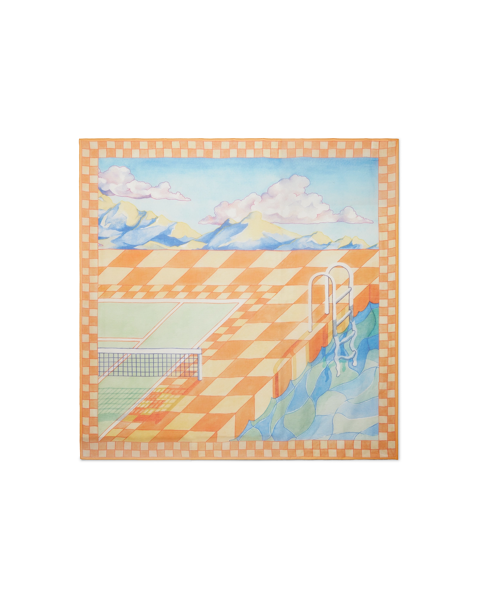 The Surreal Pool pareo is a printed wrap-around design crafted from modal fabric featuring the house’s seasonal artwork. Completed with a checkered pattern border.