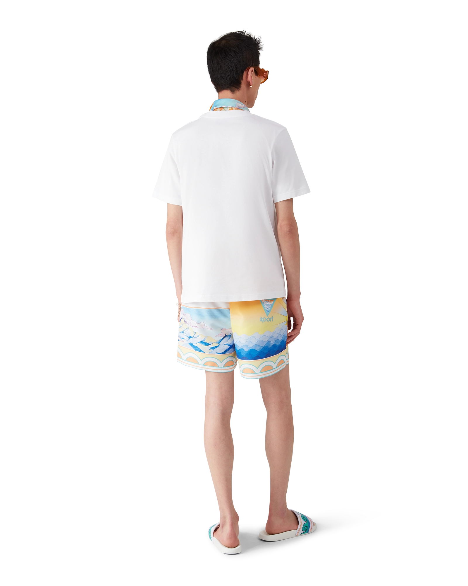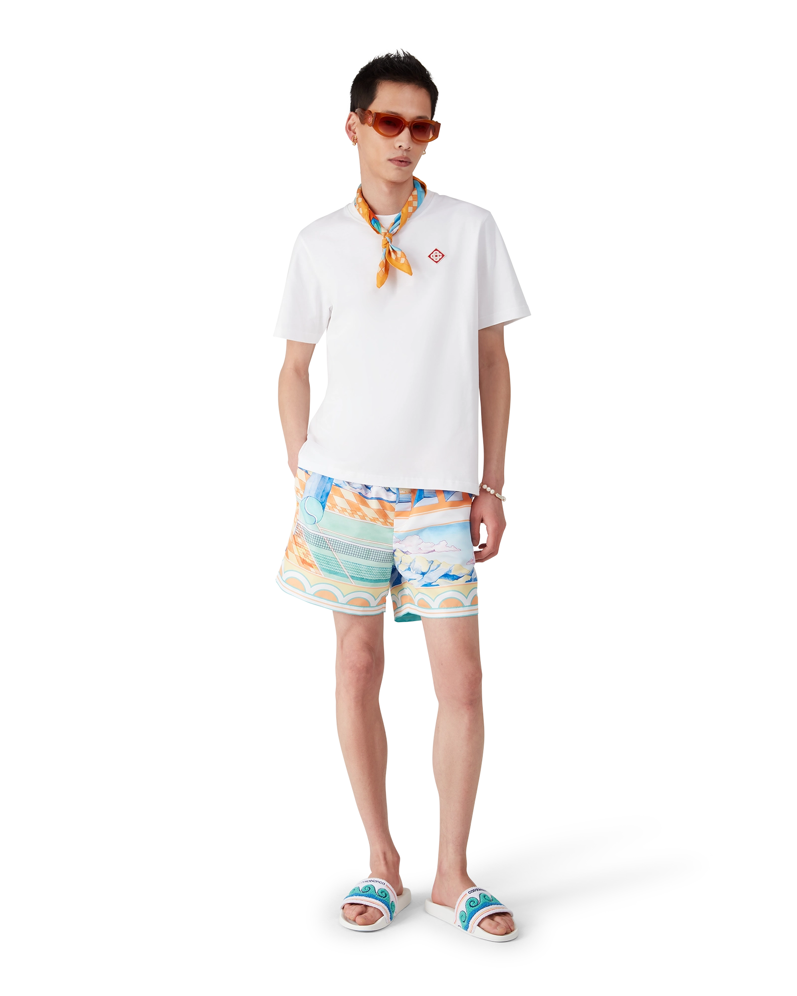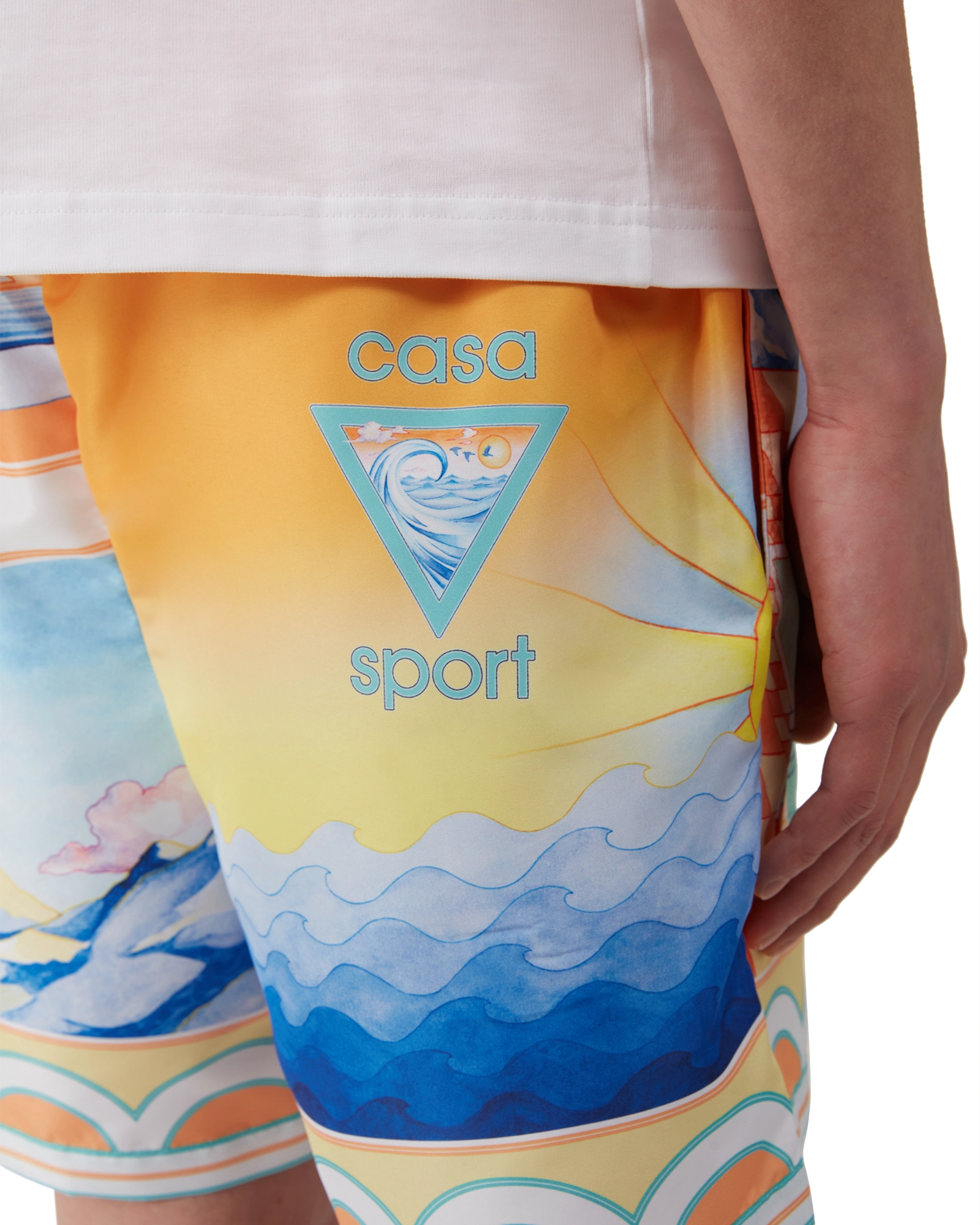 The Surreal Pool swim shorts are an all-over printed design crafted from a technical swim fabric. Completed with an elasticated waistband. internal drawstring fastening. in-seam side pockets. an internal pocket. and a lining.