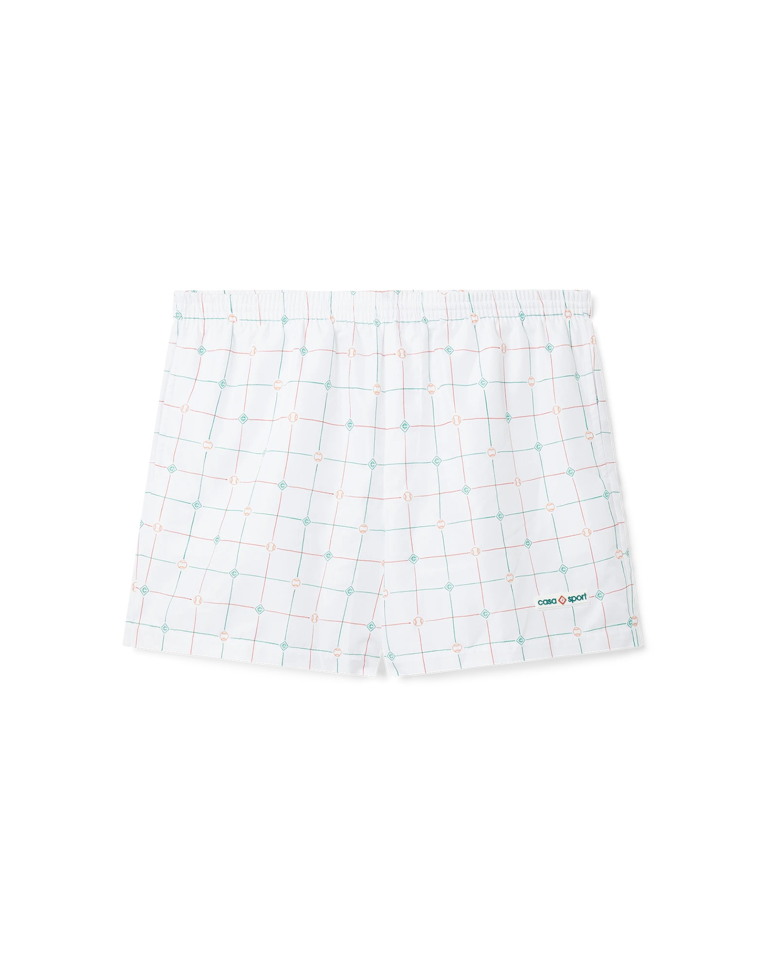 The Tennis Check swim shorts are made of technical polyester fabric with a Casablanca Paris orange and green check design. Completed with an elastic waistband. drawstring fastening and side pockets.