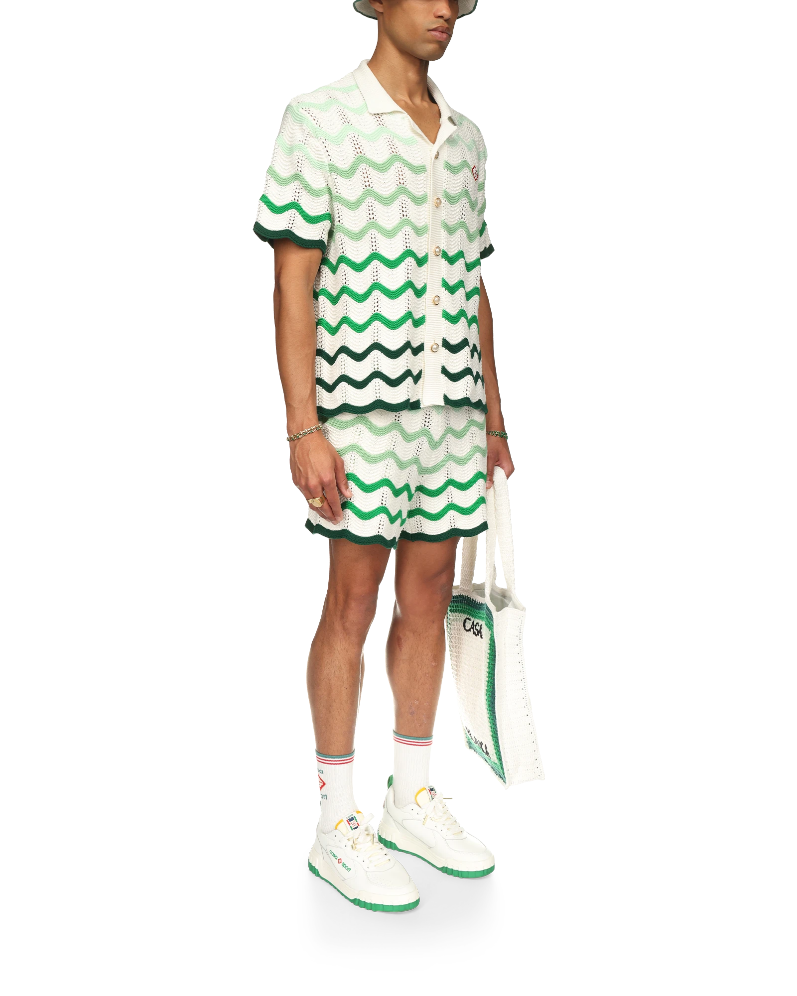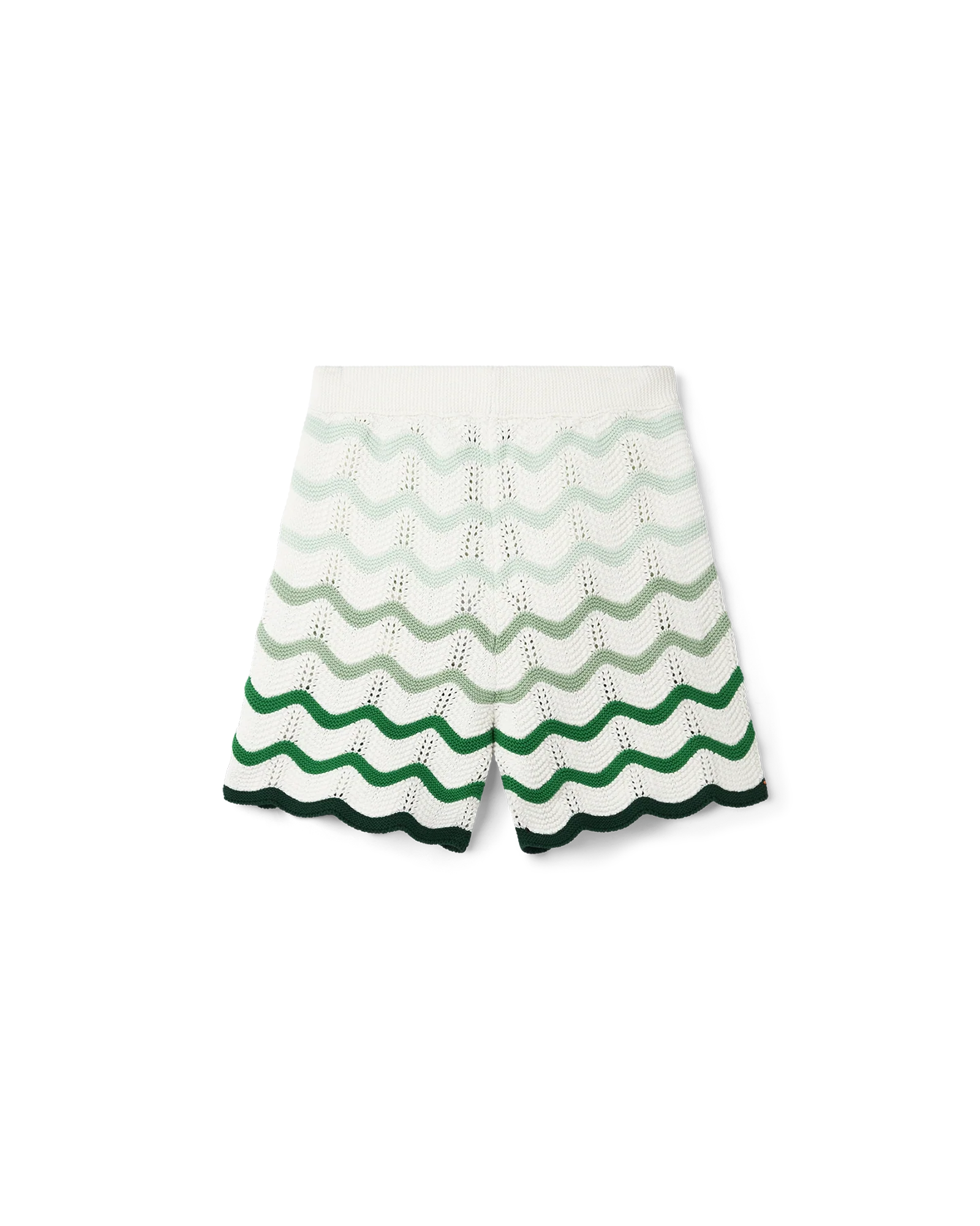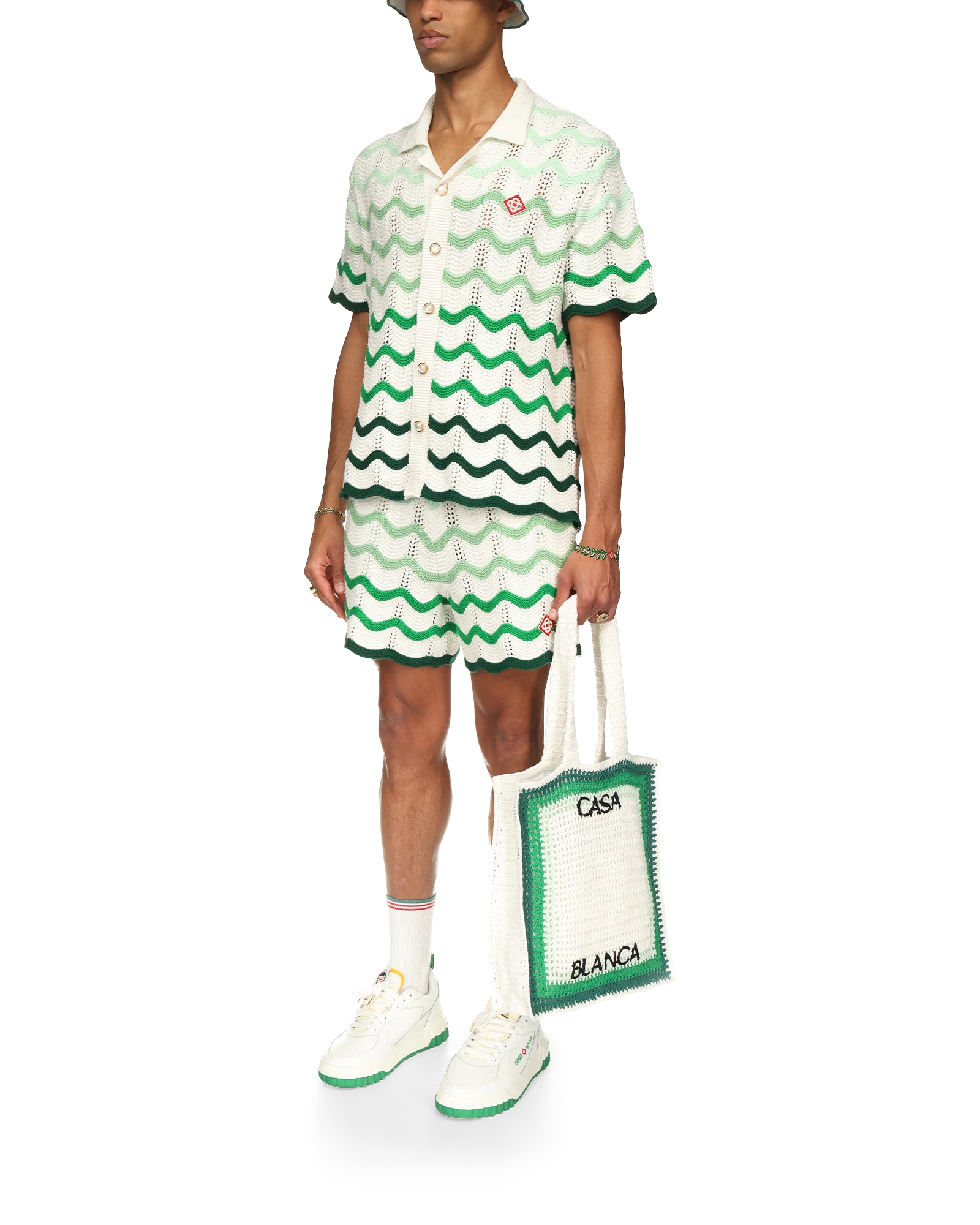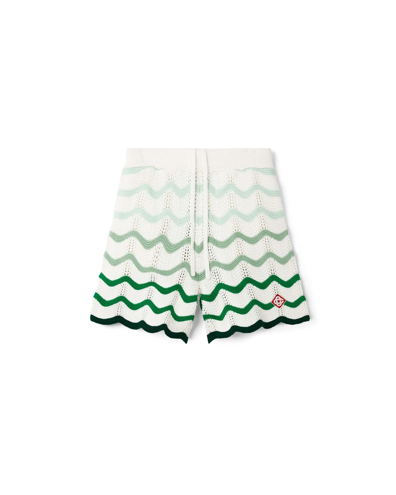 The wavy gradient crochet shorts are a signature Casablanca style crafted from a soft textured open weave crochet fabric. Finished with an internal drawstring fastening. the house’s diamond logo and Casablanca branded label.