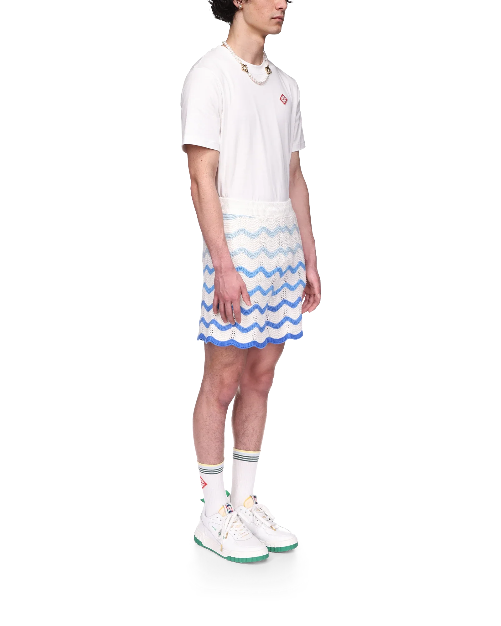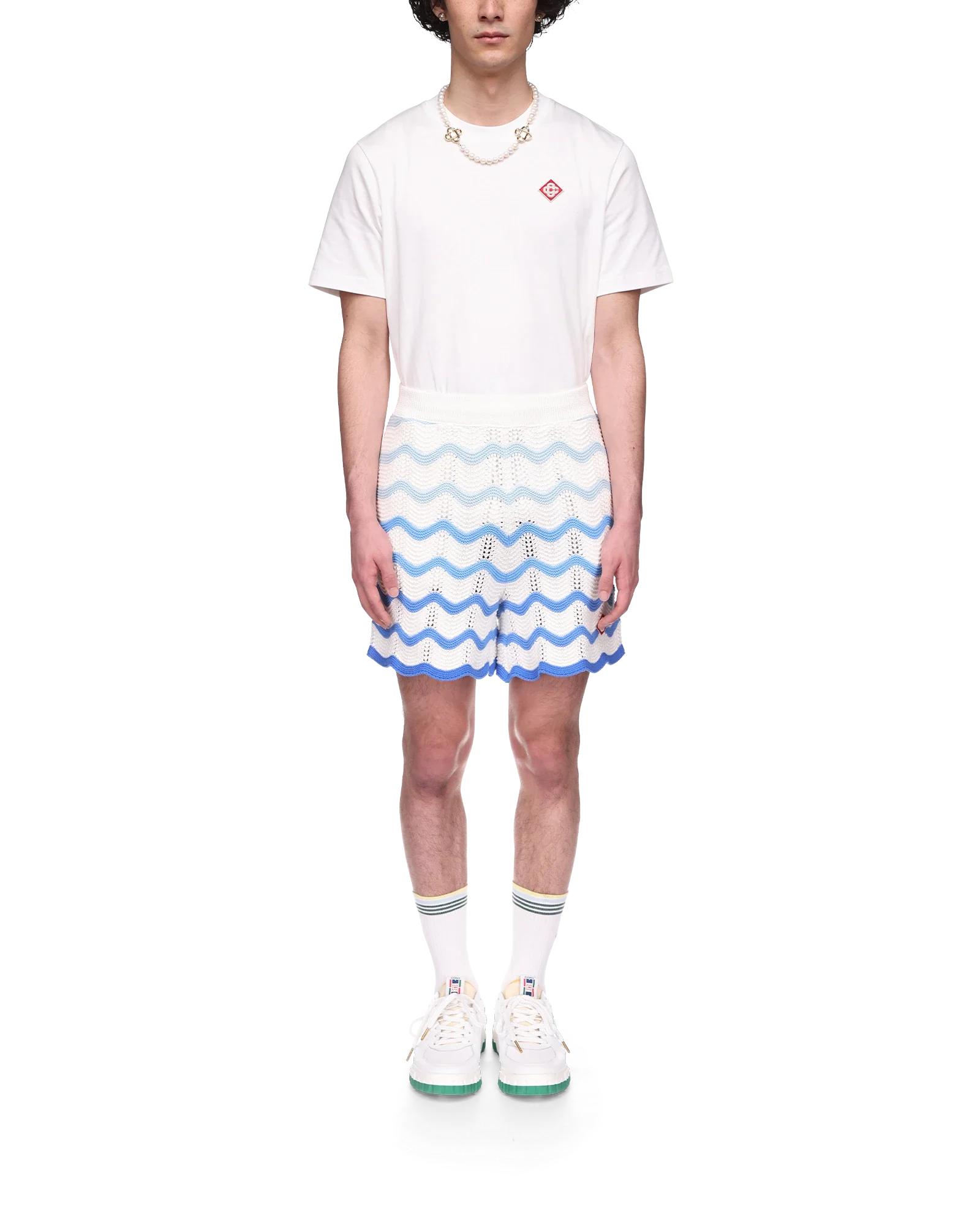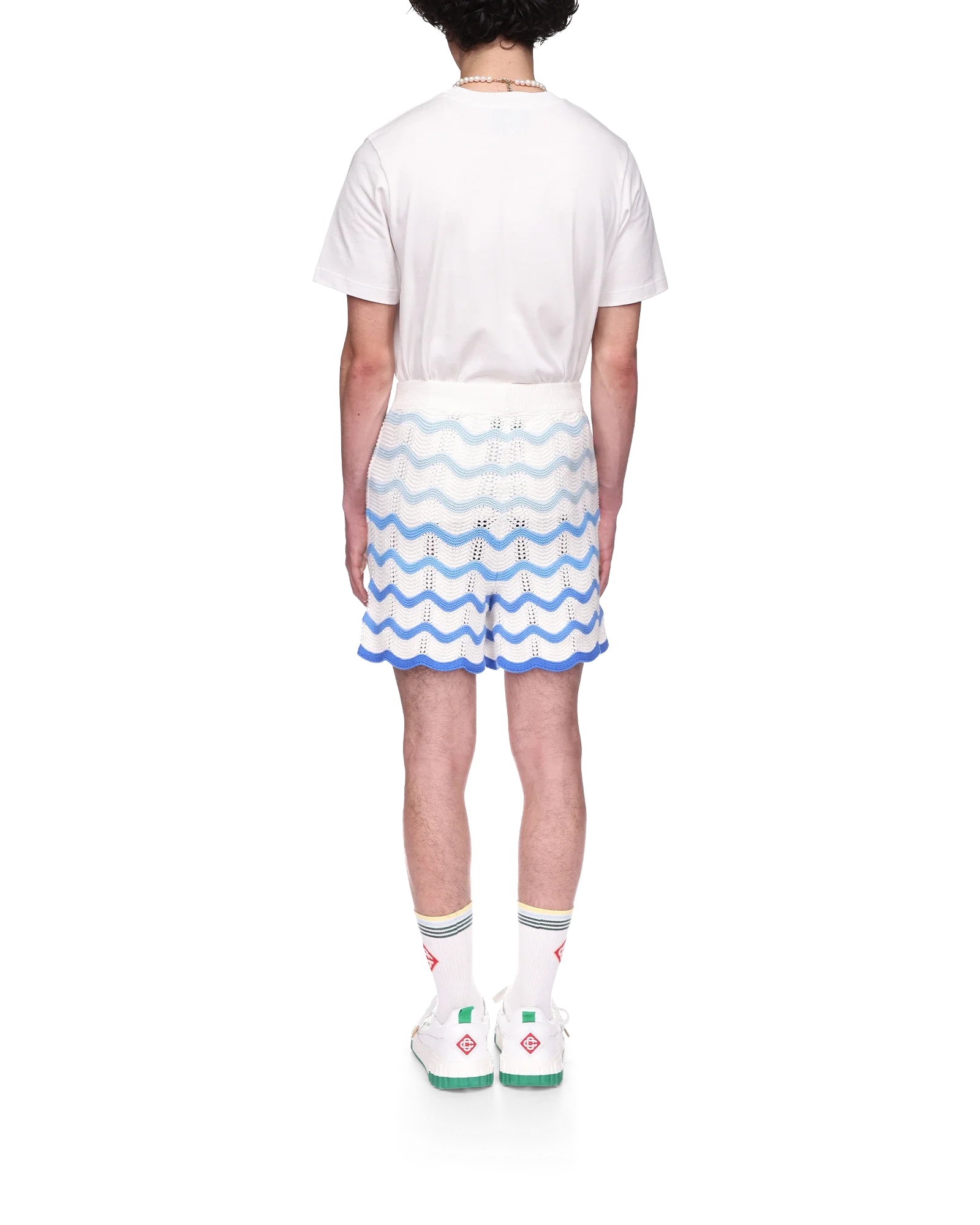 The wavy gradient crochet short is a signature Casablanca style crafted from a soft textured open weave crochet fabric. Finished with an internal drawstring fastening. the house’s diamond logo and Casablanca branded label.